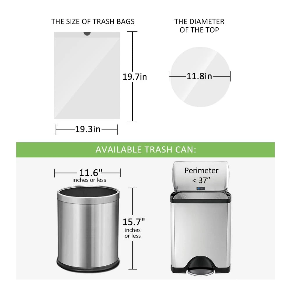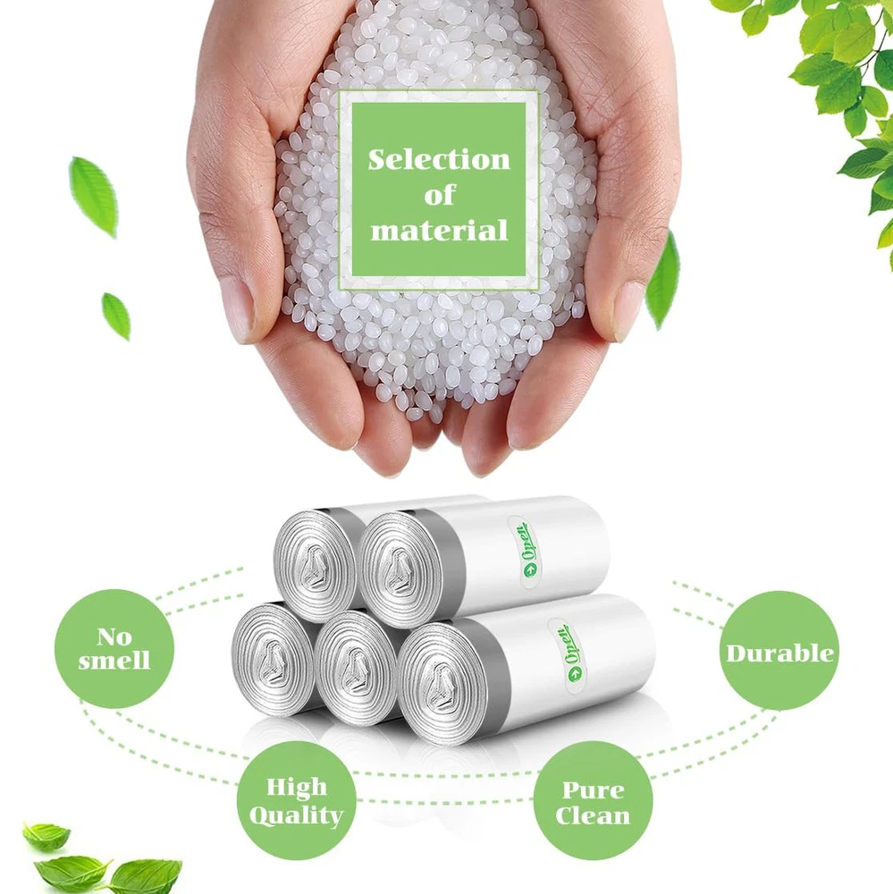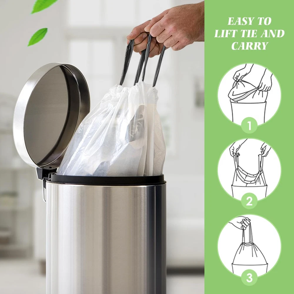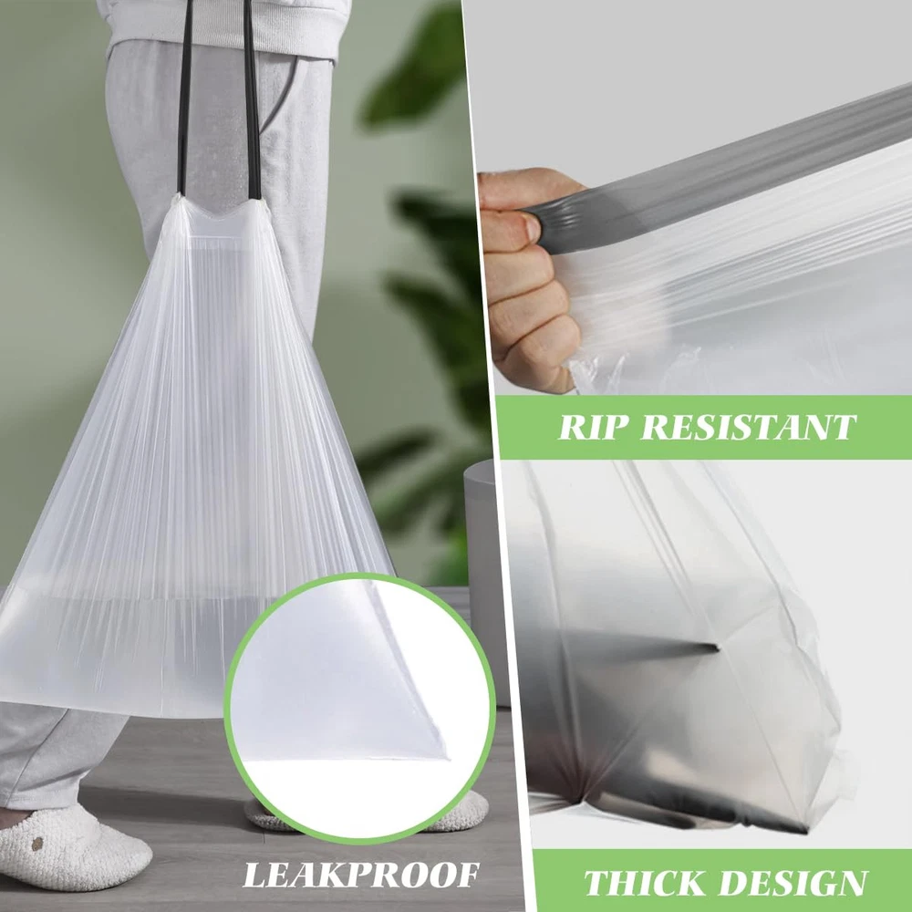 140 counts 5 gallon white strong drawstring trash bags fit 18-20 L trash can for home office kitchen bathroom bedroom. These garbage bags are made of newest pure HDPE material, durable and strong to handle daily household garbage. They arrive in a neat roll, easy for storage and enough to meet daily need. Premium Quality: Our trash bags are made of newest pure HDPE material which has proper thickness and perfect for lightweight materials and has excellent resistance to puncture and moderate resistance to tearing, durable, leakproof and odor control. Convenient Drawstring Handles: The strong drawstring let a tight grip on trash cans , so there is no messy bag overhang or bunching. Multipurpose: Our trash bags are suitable for use in bathroom, bedroom, living room, dining room, office and cleaning pet’s litter and baby diapers. Strong Enough to Carry Daily Trash: trash bags are made of high quality material, provides advanced rip and tear protection. Size for Small Trash Cans: They arrive in a neat roll, easy for storage. Handle daily household garbage and everyday demands with our trash bags.