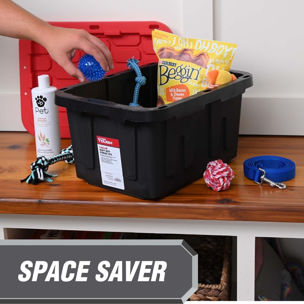 You may also like 41 Quart Plastic Under Bed Storage Box Adults Sized Clothing Blankets Set of 6 72.86 USD 76.69 USD Free shipping 5% off 12 Gal Max Pro Plastic Storage Tote 6 Pack Utility Stacking Heavy Duty Tote Gray 67.67 USD 71.23 USD Free shipping 5% off Clear Storage Bins W/ Latch Lid Stackable Plastic Containers 6 Count Organizing 56.38 USD 59.35 USD Free shipping 5% off 4-Pack Latching Box Under Bed Plastic Storage Bins with Lids & Wheels 56 Quart 83.29 USD 87.67 USD Free shipping 5% off 42 Compartment Storage Organizer Desktop Wall Mount Hardware Parts Crafts Tools 50.13 USD 52.77 USD Free shipping 5% off 26 Drawer Plastic Parts Storage Hardware and Craft Cabinet Organizer Office 46.15 USD 48.58 USD Free shipping 5% off Letter/Legal File Tote Box Storage Bin Tote Organizer with Durable Latching Lid 38.2 USD 40.21 USD Free shipping 5% off Organize clutter and hid unused items with the 5 Gallon Snap-Lid Plastic Storage tote, set of 4 units. Made of durable polypropylene, the black storage tote allows you to hide away things you don’t want to be seen while the red on-trend snap-lid adds a pop of color to your space. The 2-point snap-lid ensures your items are safely secure during storage or transport. The specially molded lids allow you to stack multiple totes on top to prevent toppling and maximize storage space. Protect your valuable by utilizing the 4 tie-down holes made for zip-ties and padlocks. The long lasting tote works great in basements, closets, pantries, sheds, barns, and attics. This tote is great for organizing household products, gardening supplies, pet treats and supplies, shoes, clothing, seasonal gear like boots, sporting equipment such as golf balls, tennis balls, or drill cones, and many other items. Tough black resin construction resists rust, dents, stains and peeling to ensure lasting use Stackable lid design creates stability and reduce toppling when multiple units are stacked. Snap-Fit Lid lip keeps your content from spilling or falling out. Lockable Lid comes with X holes ideal for zip-ties or padlocks to keep your items safe and secure Exterior Dimensions - 12.3 IN W x 16.4 IN Dx8.6 IN H Easy to clean surface Indoor or Outdoor use Made from recycled materials Grooves for straps and tie downs Reusable Set of 4 – Includes 4 black base and 4 red lid Weight – 1.9 lbs each unit Available in multiple sizes: 5 Gallon, 12 Gallon, 17 Gallon, 27 Gallon, 40 Gallons and 50 Gallons. You may also like Kids Table and 2 Chair Set Toddler Table and Chair Set Height Adjustable Boys 93.85 USD 98.79 USD Free shipping 5% off Computer Gaming Home Office Desk W/ Storage & Monitor Stand Modern Corner Table 79.7 USD 83.9 USD Free shipping 5% off 1.8 Gallon Pump Pressure Sprayer Lawn & Garden Water Spray Bottle for Plants 55.95 USD 58.89 USD Free shipping 5% off Shoe Organizer Adjustable Double Layer Stack Rack Storage Holder for Closet New 58.74 USD 61.83 USD Free shipping 5% off Portable Pop Up Canopy Tent Heavy Duty Waterproof UV Protection with Carry Bag 101.52 USD 106.86 USD Free shipping 5% off Professional Wet/Dry 5 Gallon Beast Series 5.5 HP 1-7/8" Hose Jobsite Vacuums 193.2 USD 203.37 USD Free shipping 5% off 12-Inch Globe with Blue Oceans Silver-Toned Metal Desktop Base Full-Meridian 84.56 USD 89.01 USD Free shipping 5% off Retro Frother and Hot Chocolate Maker and Dispenser 32 Oz for Coffees Lattes 46.92 USD 49.39 USD Free shipping 5% off 1000mm 5pcs Aluminum Extrusion European Standard 2040V Slot Anodized Linear Rail 75.08 USD 79.03 USD Free shipping 5% off Turn-N-Tube No Tools 3D 3-Tier Entertainment Stand Up To 50 Inch TV Living Room 59.82 USD 62.97 USD Free shipping 5% off Indoor Folding Table Set of 4 in Black L19 x W15 x H26 in 4 Tables+1 Rack Stand 56.37 USD 59.34 USD Free shipping 5% off 16" Wall Mounted Cabinet Storage Cabinet Bathroom Pantry with 1 Adjustable Shelf 92.49 USD 97.36 USD Free shipping 5% off