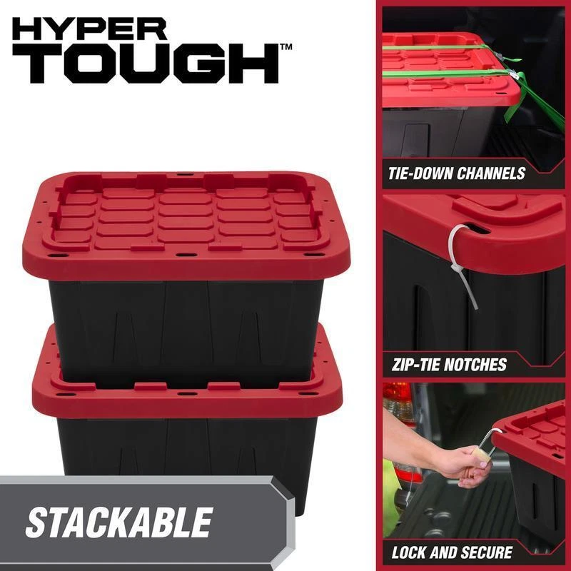 You may also like Spring Valley Triple Strength Glucosamine Chondroitin Tablets Dietary 340 Count 39.75 USD Free shipping Airtight Food Storage Container 16 Cup W/ Lid Clear Plastic Modular Stackable US 19.54 USD Free shipping Spin Mop Bucket Set W/ Wringer 6 Microfiber Heads 360° Rotating Handle Wheels US 56.42 USD Free shipping Fireproof Safe Key Lock Document Storage Box Durable Home Travel Security New 48.72 USD Free shipping Pro Series Chainsaw Chain Storage Case Holder Universal Fits Up to 20 Chains New 89.78 USD Free shipping 3-Pc Dining Set Compact Table Chairs Steel Legs Built-In Wine Rack Small Space 96.41 USD Free shipping 7-Piece Stainless Steel Pots & Pans Set W/ Cool Grip Handle & Glass Cover New 64.11 USD Free shipping Mosaic Solar Lantern Hanging Glass Lights Outdoor Garden Decor Waterproof Gifts 29.36 USD Free shipping Vintage Wine Goblets Set of 6 Sturdy Handcrafted Clear Glass Dishwasher Safe New 80.78 USD Free shipping Walk in Greenhouse All Seasons Sturdy Steel Frame Durable PE Cover Rollable Door 123.75 USD Free shipping 6 Ft Pre-lit Christmas Tree W/ 250 LED Lights Pinecones Berries Indoor Outdoor 128.24 USD Free shipping Triple Rivet Kitchen Utility Knife Block Set High Carbon Stainless 20 Piece New 45.81 USD Free shipping Organize clutter and hide unused items with the Hyper Tough 5 gallon snap-lid plastic storage tote. The small size makes it portable while fitting in smaller spots like cars or under cabinets. Made of durable rigid polypropylene, the black storage tote allows you to hide away things you do not want to be seen, while the red snap-lid adds a pop of color to your space. The 2-point snap-lid ensures your items are safely secure during storage or transport, while making it easy to open. The specially recessed lid allow you to stack multiple totes on top of each other to and avoids toppling while maximize storage space. Protect your valuables by utilizing the 4 tie-down holes made for zip-ties and padlocks. The easy to clean material helps keep out pest, dirt, and dust. The long lasting Hyper Tough tote works great in basements, closets, pantries, sheds, barns, and attics. This tote is great for organizing household products, gardening supplies, pet treats and supplies, shoes, clothing, seasonal gear like boots, sporting equipment such as golf balls, tennis balls, or cones, and many other items. Tough black plastic construction resists rust, dents, stains and peeling to ensure lasting use Stackable lid design creates stability and reduce toppling when multiple units are stacked Snap-Fit Lid lip keeps your content from spilling or falling out Lockable Lid comes with 4 holes ideal for zip-ties or padlocks to keep your items safe and secure Exterior Dimensions -12. 3 IN W x 16. 4 IN Dx8. 6 IN H Easy to clean surface Indoor or Outdoor use, Made from recycled materials Set of 1 – Includes 1 black base and 1 red lid Available in multiple sizes: 5 Gallon, 12 Gallon, 17 Gallon, 27 Gallon, 40 Gallons and 50 Gallons You may also like 150 Piece Household Hand Tool Set Repair DIY Kit Mechanics Utility Box Gift New 76.94 USD Free shipping Smart LED Curtain Lights Color Changing Music Mode DIY 520 RGBIC String Lighting 166.71 USD Free shipping 146 PCS Mixed Tool Kit Drive Socket Set Repair Combination General Household Hot 64.11 USD Free shipping 6 Pack Glass Coffee Mugs W/ Handle Heat Resistant Coffee Cups Hot Cold Beverages 34.08 USD Free shipping Packable Outdoor Blanket 70in x 60in Lightweight Soft Quilted Camping Travel New 28.41 USD Free shipping Wall Mount Coat Rack Black 5 Hooks Organizer Towels Keys Bags Bathroom Kitchen 44.16 USD Free shipping 44 Pc. 3/8" Drive Impact Socket Set SAE/Metric Chrome Moly Steel Black Oxide New 96.17 USD Free shipping 6 Gallons Portable Air Compressor Combo Kit W/ 1/4-In x 15 Ft PVC Hose & 3-Tool 505.83 USD Free shipping Air Fryer Oven 2.6 Qt Ceramic Nonstick Surface Auto Shut Off Digital 1000-W New 68.85 USD Free shipping Foldable Weight Bench Press 660LBS Incline Decline Home Gym Sit-Up Training New 76.94 USD Free shipping 1000ct 16oz Clear Plastic Cups Disposable Cold Drink Lightweight Recyclable New 101.16 USD Free shipping 100 LP Record Mailers Cardboard Shipping Boxes Multi-Depth Holds 1-4 Albums New 93.56 USD Free shipping