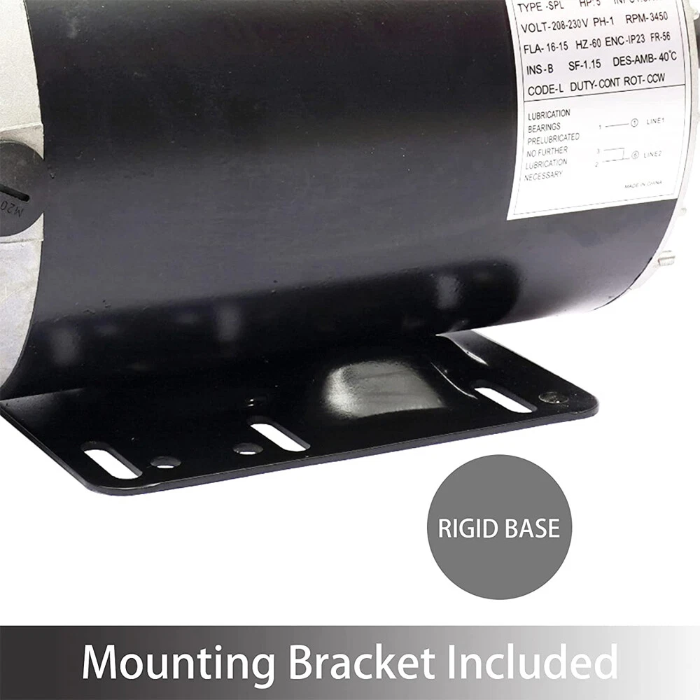 MPN: Does Not Apply AC Phase: Single Phase,2 Pole Current Type: AC Model: 5HP SPL motor Horsepower (HP): 5 Hp Mounting Type: Base-Mounted UPC: Does not apply AC Frequency Rating: 60 Hz Shaft Diameter: 5/8 in Rated Load (HP): 5 Brand: Unbranded/Generic Suitable For: Air Compressor Applications Part Type: 5 Hp Air Compressor Motor: CCW Base RPM: 3450 Wire Material: Copper gtin13: Does not apply AC Motor Type: Induction/Asynchronous