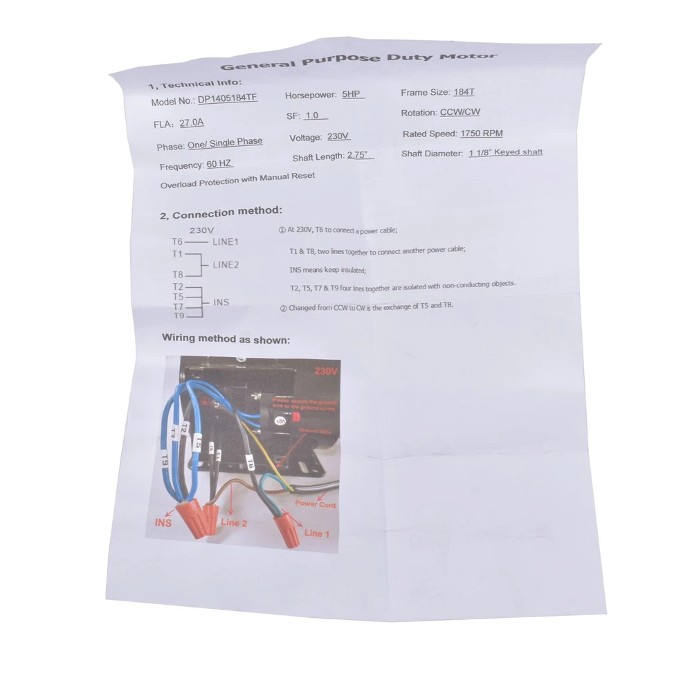Details Description: Frame: 184T Phase: One/ Single Phase Horsepower: 5 HP ENC: ODTF Voltage: 208-230V Amperage: 28.5-27.0 A RPM: 1725 RPM Synchronous: Speed 1800 RPM Frequency: 60 HZ Shaft Diameter: 1-1/8” Keyed shaft Shaft Length: 2-3/4” ROT: CW-CCW Overload Protector with Manual Reset Mounting Type: Base-Mounted DC Stator/Winding Type: Permanent Magnet Reversible/Non-Reversible: Non-Reversible Inverter/Vector Duty Rating: Not Inverter/Vector Duty Rated Insulation Class: F (Max 311°F) Protection Against Liquids: Not Protected Design: Industrial Air Compressor Electric Motor OE Number : L1430T, 36M926T077G1, L8430T Shipping Policy Payment Method Returns Policy Shipping Policy -Please leave us your full name, your telephone number and detailed address when ordering. -We ship to your eBay or Paypal address. Please make sure your eBay and Paypal address is correct before you pay the order. -We try our best to pack the products as good and safe as possible ,so they always arrive in a good condition. Payment Method -We accept PayPal only. -All major credit cards are accepted through secure payment processor PayPal. -Payment must be received within 4 business days of auction closing. Returns Policy -We offer sophisticated products at a high technological level, with the highest possible quality and the most favorable price. -With these parts you can replace your defective parts simply plug and play. -Our warranty is valid for max. 24 months without mileage limitation. -Please compare carefully with Photos or OE number before purchasing the part. -Once a problem occurs with the purchased product, please do not hesitate to let us know with Ebay messages,we will offer you refund or replacement. Product View Details Description: Frame: 184T Phase: One/ Single Phase Horsepower: 5 HP ENC: ODTF Voltage: 208-230V Amperage: 28.5-27.0 A RPM: 1725 RPM Synchronous: Speed 1800 RPM Frequency: 60 HZ Shaft Diameter: 1-1/8” Keyed shaft Shaft Length: 2-3/4” ROT: CW-CCW Overload Protector with Manual Reset Mounting Type: Base-Mounted DC Stator/Winding Type: Permanent Magnet Reversible/Non-Reversible: Non-Reversible Inverter/Vector Duty Rating: Not Inverter/Vector Duty Rated Insulation Class: F (Max 311°F) Protection Against Liquids: Not Protected Design: Industrial Air Compressor Electric Motor OE Number : L1430T, 36M926T077G1, L8430T Shipping Policy Payment Method Returns Policy FAQ Shipping Policy -Please leave us your full name, your telephone number and detailed address when ordering. -We ship to your eBay or Paypal address. Please make sure your eBay and Paypal address is correct before you pay the order. -We try our best to pack the products as good and safe as possible ,so they always arrive in a good condition. Payment Method -We accept PayPal only. -All major credit cards are accepted through secure payment processor PayPal. -Payment must be received within 4 business days of auction closing. Returns Policy -We offer sophisticated products at a high technological level, with the highest possible quality and the most favorable price. -With these parts you can replace your defective parts simply plug and play. -Our warranty is valid for max. 24 months without mileage limitation. -Please compare carefully with Photos or OE number before purchasing the part. -Once a problem occurs with the purchased product, please do not hesitate to let us know with Ebay messages,we will offer you refund or replacement. FAQ On Dec 28, 2025 at 19:36:24 PST, seller added the following information: