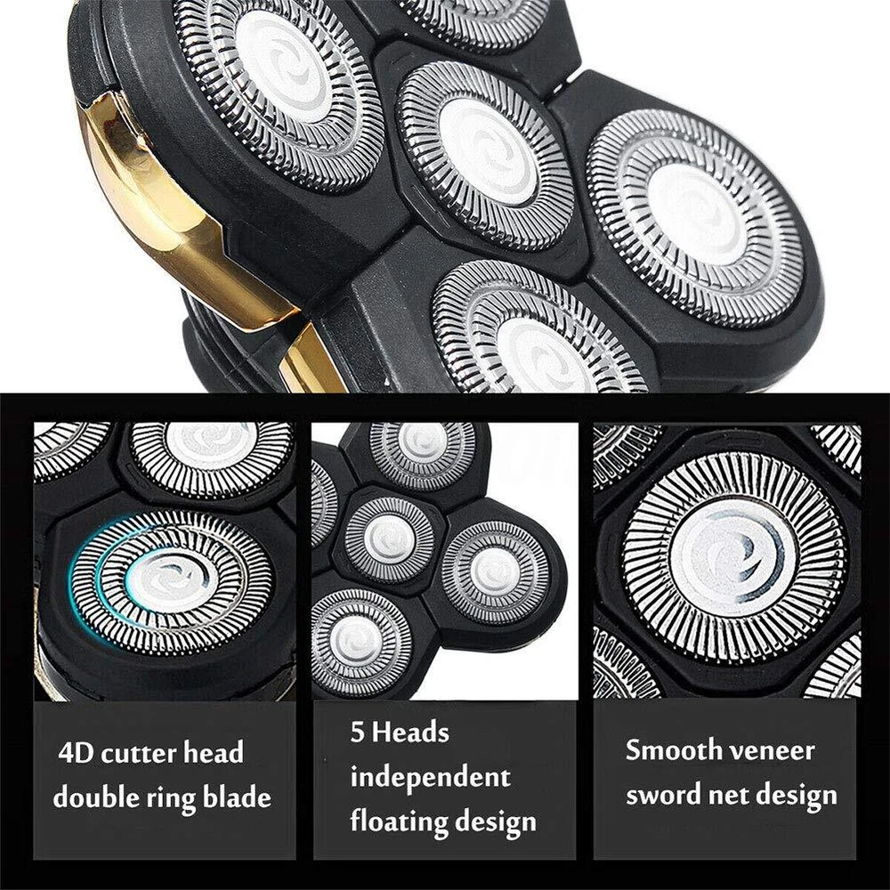 Description:100% brand new and high quality.Universal replacement razor blade heads for all 5 head razors.Made of high quality material, durable and practical.Easy to install,clean the razor before installing.Rotary 4D cutter head double ring blade, three-dimensional cutter head structure.Floating veneer technology, cleaner and faster.Specifications:Item type: 5 Head Shaver blade headsMaterial: Metal and .Color: Gold, Blue, Gray, Black.Application: Shaving, BarberSize: approx. 5.5x3cm/2.2 x 1.2inchSuitable: Universal.Package includes: 2PCS* 5 Head Shaver blade headsNotes:Transition: 1cm=10mm=0.39inch1. Due to the different monitor and light effect, the actual color of the item might be slightly different from the color showed on the pictures. Thank you!2. Please allow 1-3cm measuring deviation due to manual measurement. 【Premium Material】: Made of high-quality materials for continuous, efficient and easy-to-use features. 【Perfect Performance】: Replacing your razor head gives a 25% better shave. Clean the product regularly for optimum performance.Five large flexing rotary blades allow efficient close shaving for all types of skin closely following all the contours of your head, face and neck. 【Easy to use】Just snap on and shave Washable, easy to clean, Each blade has an independant rotation allowing better access to difficult areas. 【Suitable for】Special Design Blades for Women/Men Wet Dry Hair Remover Replacement Heads. 【Compatibility】Universal replacement razor blade heads. Rotary 4D cutter head double ring blade, three-dimensional cutter head structure. Not fit for Skull rotary razors and Remington razors.