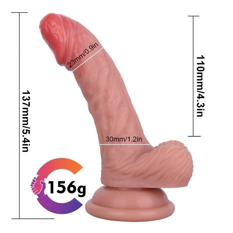 100% new and high quality 100% waterproof, easy to clean Made by Liquid Silicone (not cheap PVC or TPE), environmentally-friendly, body-safe, and of odorlessness material. Double layer design,soft and flexible With super strong sucking cup, free your hands Total Length:137mm/5.4in Insert Length: 110mm/4.3in Insert Diameter: 30mm\1.2in Color: Flesh Package List: 1 x Dildo with box Privacy Guaranteed: We will discreet package, unmarked packaging, confidential delivery.
