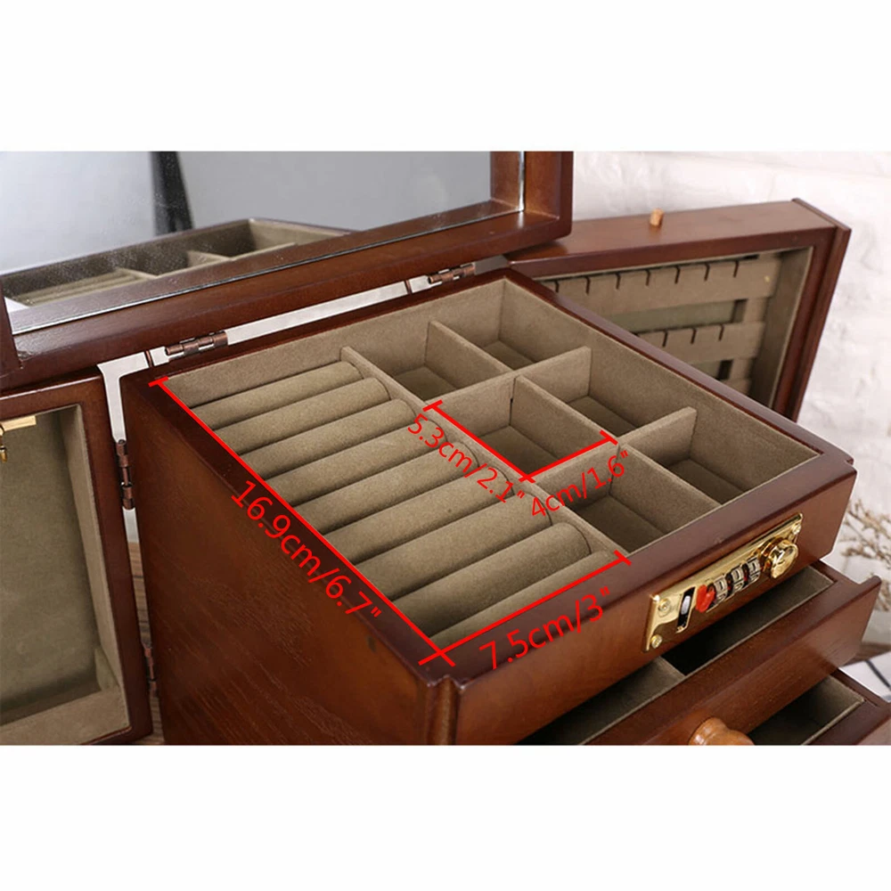 5 Layers Vintage Large Jewelry Organizer Wooden Storage Box Case with 4 Drawers