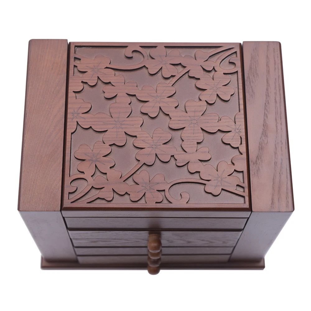 5 Layers Vintage Large Jewelry Organizer Wooden Storage Box Case with 4 Drawers