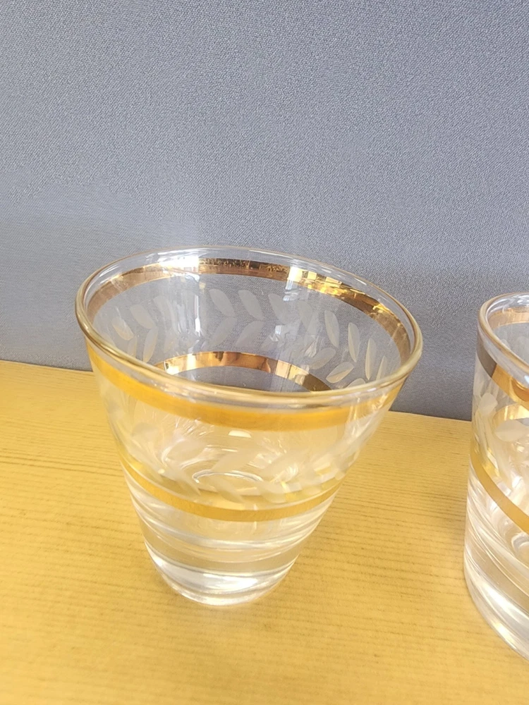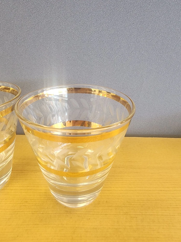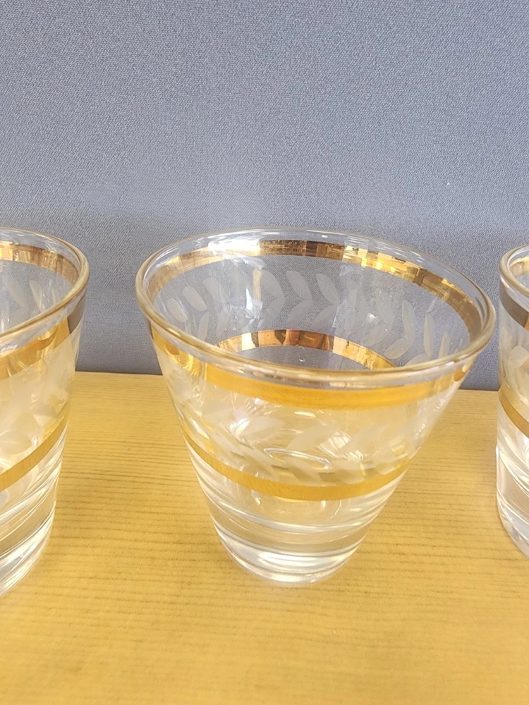 Service For: 5 Item Height: 2-3/4 in Occasion: Cocktail Party Style: Mid-Century Modern Brand: Unbranded Color: Clear and Gold Type: Juice Glass Shape: Round Design: Round Features: Decorated Set Includes: Drinking Glass Department: Adults Glassware Type: Lowball Glass Theme: Food & Drink Material: Glass Care Instructions: Hand Wash Only Number of Items in Set: Five-Piece
