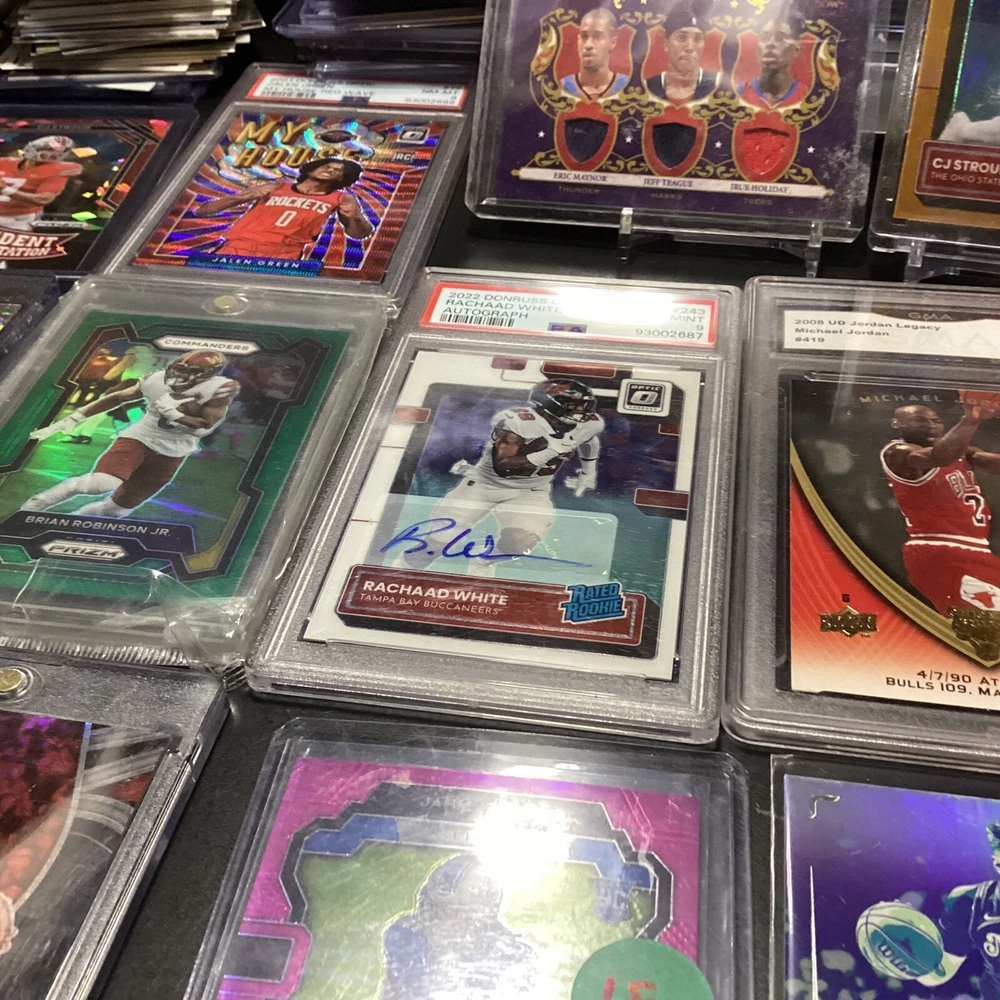 The product is a mystery sports card lot containing 5 cards from the 2020 Panini Prizm set featuring basketball players such as Stephen Curry, LeBron James, and Kevin Durant. The cards are from the 2023 NBA season and are manufactured by Panini. Each lot is valued between $5 and $40, with no base cards included. This offering caters to sports trading card collectors looking for a mix of high-value cards from top NBA athletes in the 2023 season.