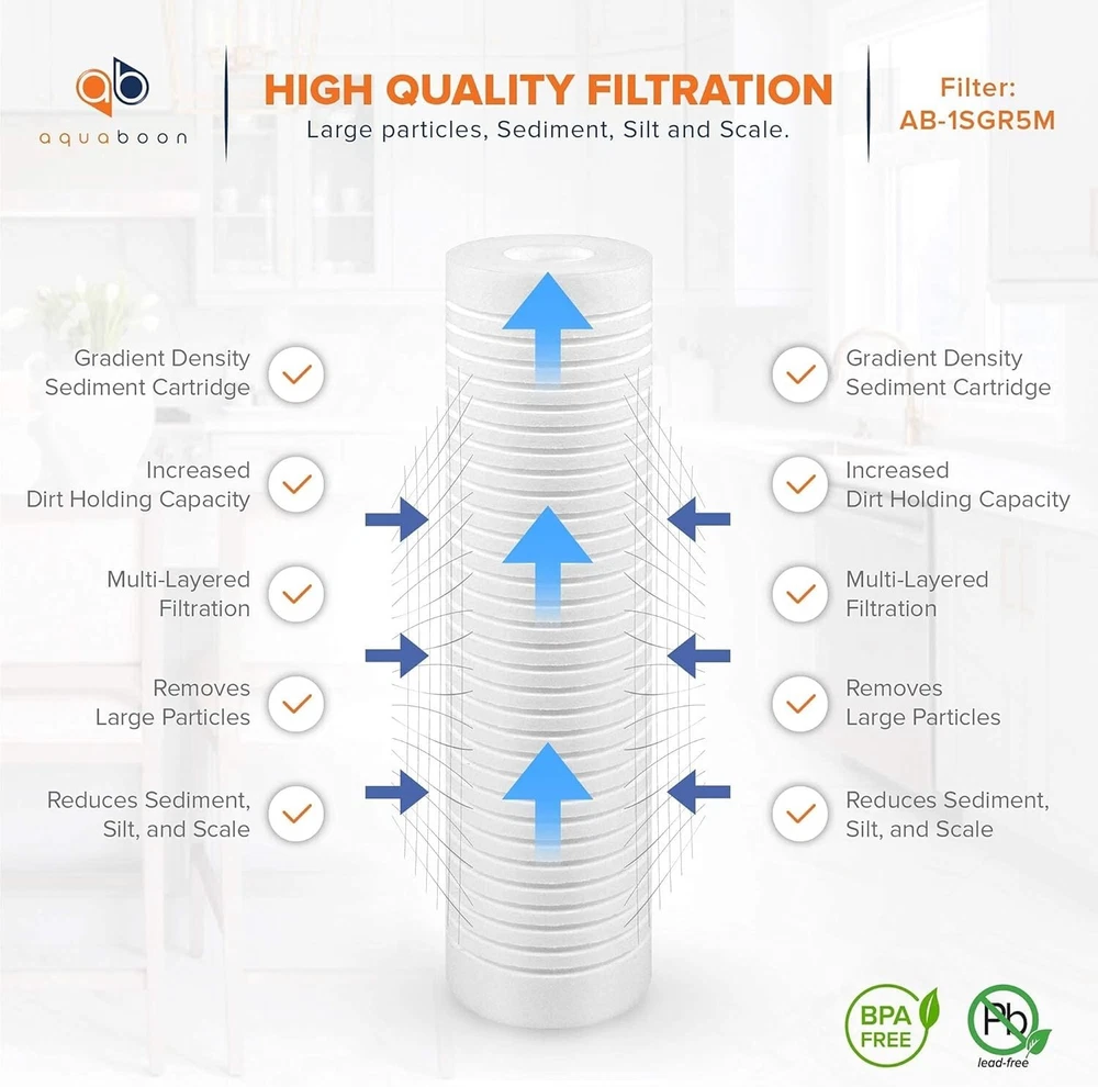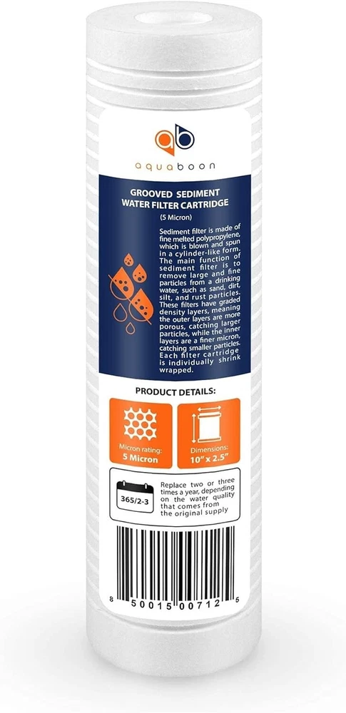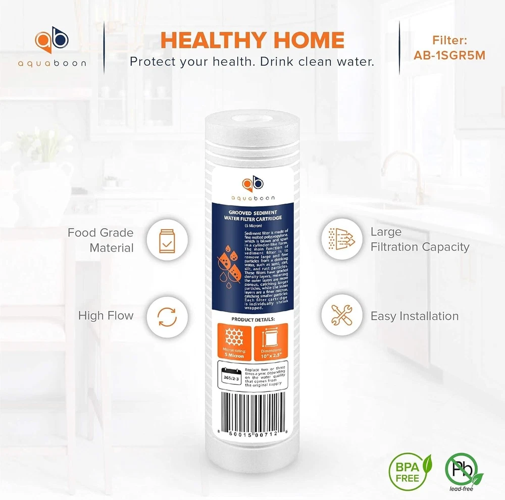 5 Micron 10 x Grooved Sediment Water Filter for Whole House Filter Cartridge Compatible with AP110, WHKF-GD05, , 25-Pack Unrivaled Filtration Prowess: Our’s grooved sediment water filter cartridge delivers exceptional well water filtration, capturing sand, rust and dirt. This 5 micron water filter ensures crystal-clear filtered water for every faucet. Lifespan for Long-Lasting Performance: Engineered to last up to 4-6 s, grooved 5 micron water filter offers reliable filtration for well water systems. With fewer well water filter s needed, it’s the perfect solution for households. Effortless Installation and Universal Fit: Enjoy easy, tool-free installation with ’s 10 inch water filter cartridge. Compatible with filter housings, sediment filters fit seamlessly into whole home water filtration systems and RO systems. Grooved Sediment Filter for Maximum Filtration: The grooved design of our water filters cartridges increases the surface area, maximizing dirt-holding capacity and efficiency. Capture more contaminants and experience cleaner, fresher water. Precision Filtration: With a 5 micron filtration rating, sediment filter ensures the removal of fine particles that may affect water clarity and taste. Whether filtering well water or municipal sources, house water filter keeps water without impurities. Safe Materials: Crafted from 100% polypropylene, this water filter contains no binders, solvents and antistatic agents. The thermally bonded material ensures safe, clean water while providing excellent chemical resistance and durability. Protected Plumbing and Appliances: This whole house sediment filter protects house water filter system at all by preventing sediment buildup and clogging. Extend the life of your water-using devices by keeping your well water without harmful particulates. Universal Compatibility and Versatility: Designed to fit standard 10-inch filter housings, this 5 micron water filter 10 x offers versatility for various filtration setups. It’s the perfect choice, ensuring compatibility and ease of use. Compatible 10 inch Water Filter Cartridges: Compatible with Aqua Pure AP110, Whirlpool WHCF-GD05, 3M CFS110, Hydronix SGC-25-1001, OmniFilter RS14, American Plumber WP5, Dupont PFC5002, Pentek 155749-43, P5, PD-5-934, Pentair DEV9109-08, etc. Adapted to 10 x Water Filter Housing Models: Compatible with WFPFC5002, WFPF38001C, Dupont PF 2800 Series Housings, PF 3800 Series Housings, Neo-Pure MBG-25098-05. Fits most 10 inch Reverse Osmosis Home Water Filtration Systems.