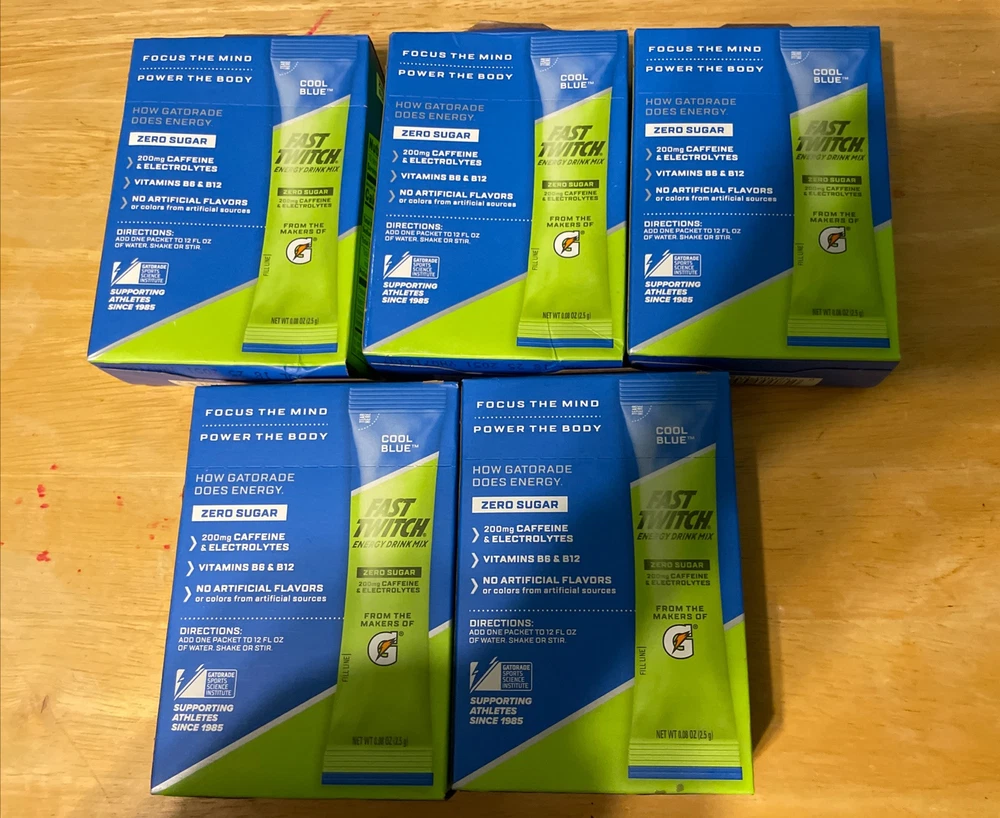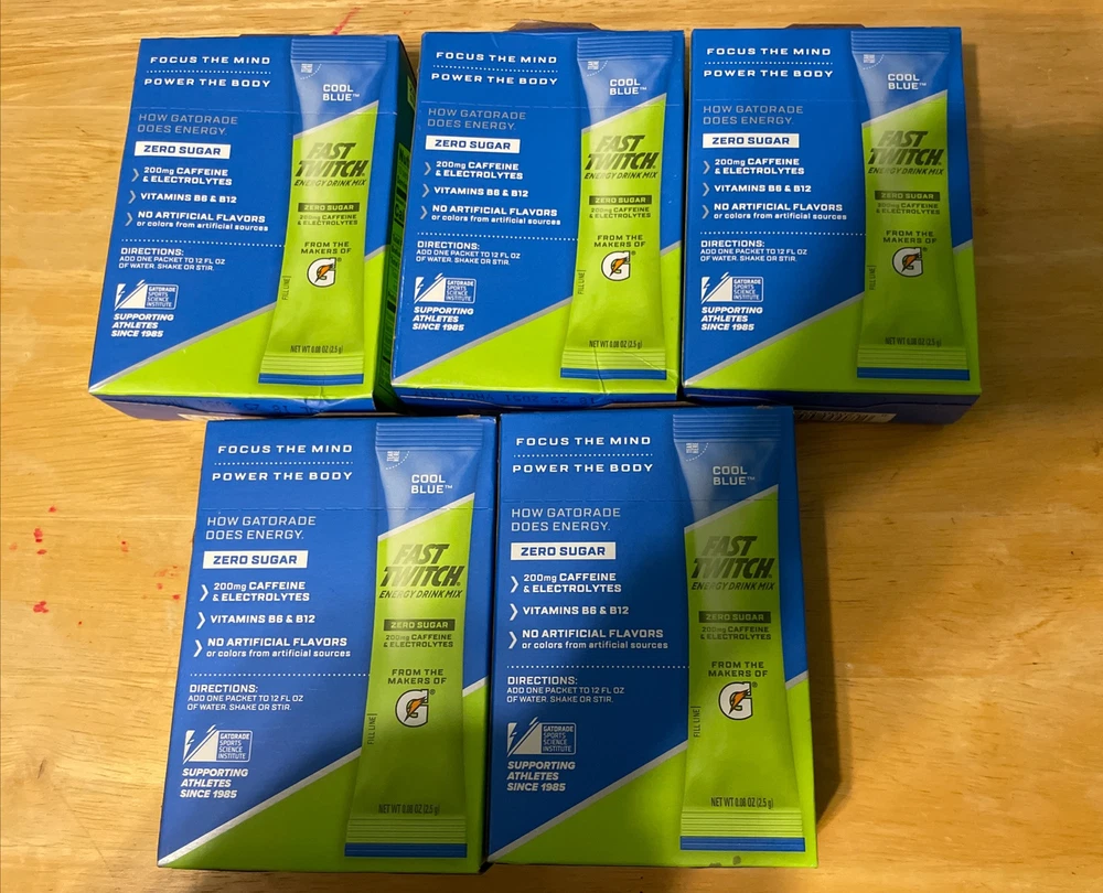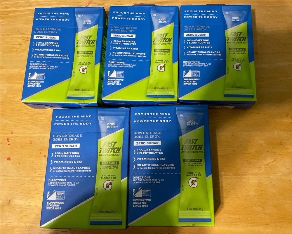 5 New Boxes Energy Drink Mix from Gatorade Powder Sticks Cool Blue 50 packs total - some boxes have imperfections, but at all the flavor packets are intact - best offers are welcome - 0 sugar - expiration date in July 2025 - Fast twitch energy drink mix - Cool blue flavored gatorade - 5 packs in total for a total of 50 flavor packets - 5 cal per pack - Contains caffeine & electrolytes 200 MG’s - there are 10 packets in each pack