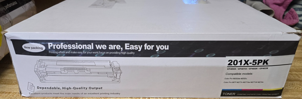 DESCRIPTION PAYMENT SHIPPING RETURN POLICY CONTACT US 3156 3215 IN STOCK USA SHIPPER GET IT FAST GUARANTEED ITEM LOOK AT THE PICTURES TO SEE IF YOUR MODEL IS LISTE D !! BRAND NEW ITEM GUARANTEED THIS ITEM IS UNUSED, FACTORY BOXED. An item in excellent, new condition with no wear, the original packaging. The item includes original accessories IT HAS NO DAMAGE AND WORKS JUST LIKE a BIG BOX STORE ITEM! YOU GET A NEW ITEM AND WE PASS THE SAVINGS ON TO YOU!! REALDEALSDUDE SAYS 100% SATISFACTION GUARANTEED WITH THIS TOP PRODUCT! 30 DAY FREE RETURNS!!! FAST SHIPPER! WE WILL SOLVE ANY PROBLEMS CONTACT US ASAP VIA EBAY! YOU DESERVE THE BEST!! YOU CAN GET INFERIOR BRANDS BUT WHY?? THE BEST FITTING BRAND WITH THE HIGHEST QUALITY TO LAST DONT SETTLE FOR LESS! MAY QUALIFY FOR EBAY ALLSTATE PROTECTION PLAN 2 BLACK!! 1 Cyan 1 Magenta 1Yellow Package Contents : 2 x 201X CF400X black toner cartridge, 1 x 201X CF401X cyan toner cartridge, 1 x 201X CF403X magenta toner cartridge, 1 x 201X CF402X yellow cartridge (A total of 5 Pack.) Compatible Printer Model: Compatible for HP Color LaserJet Pro MFP M277n , MFP M277dw , MFP M277c6, MFP M274n ;Color LaserJet Pro M252dw ,M252n Printer Page Yield : Black 3,000 pages and Colors 2,500 pages; based on 5% coverage (Letter/A4) Refined 201X toner cartridges powder provides high-quality images and text Print true-to-life photos and easy to read texts, resists fading and smudging 201X Toner Cartridges 5 Pack High Yield Compatible for HP 201X 201A Toner CF400X CF401X CF402X CF403X Works for MFP M277dw M252dw Color Laser Jet Pro MFP M277c6 M277n M252n 2 Black 1 Cyan 1 Magenta 1Yellow Item Specifics Country/Region of Manufacture : United States Payment Payment This is the payment method we can accept: eBay Payments You can check out and pay immediately after the auction ends. Shipping Shipping 1. USUALLY GROUND UNLESS YOU PAY FOR EXPEDITED. We will ship to your eBay address. Please make sure your eBay address is correct before you pay. 2. We will usually ship out your order within 1 business day after receiving your verified payment (Excluding Weekends and Public Holidays)! Returns Returns 1.If you are not satisfied with our products. Please kindly contact us before you open the return request. We provide 30 days Money Back or Exchange Warranty. 2.Please Kindly contact us for the RMA No. and address before returning the item back. Contact Us Contact Us 1. Please contact us if you are not satisfied with the item after receive it. Just contact us using the " Ask the seller a question" link on eBay. 2.All replies will be sent to your email, if you don't get response within 1-2 business days, please check your My messages' in case your email provider has an overly-aggressive spam filter blocking eBay's emails. Please email us AGAIN.Thanks All rights reserved. Shop Category Store Home Hot Item New List Item Samsung 1.7cu ft Over-the-Range Microwave Fingerprint Resistant Stainless Steel USD 199.00 GE JES1657SMSS Microwave Oven 1.6CUFT Stainless Steel COUNTERTOP VERY NICE USD 99.00 Hotpoint - 1.6 Cu. Ft. Over-the-Range Microwave Convenience Control NEW OPEN BOX USD 199.00 BRAND NEW OPEN BOX ! LG Over-the-Range Microwave Oven 1.8 Cu Ft USD 229.00 LG 30" Over the Range 1000W Microwave Oven with 1.7 Cu. Ft. Capacity - LMV1764ST USD 199.00 Help & Info Payment Policy Shipping Policy Return Policy FAQ About Us