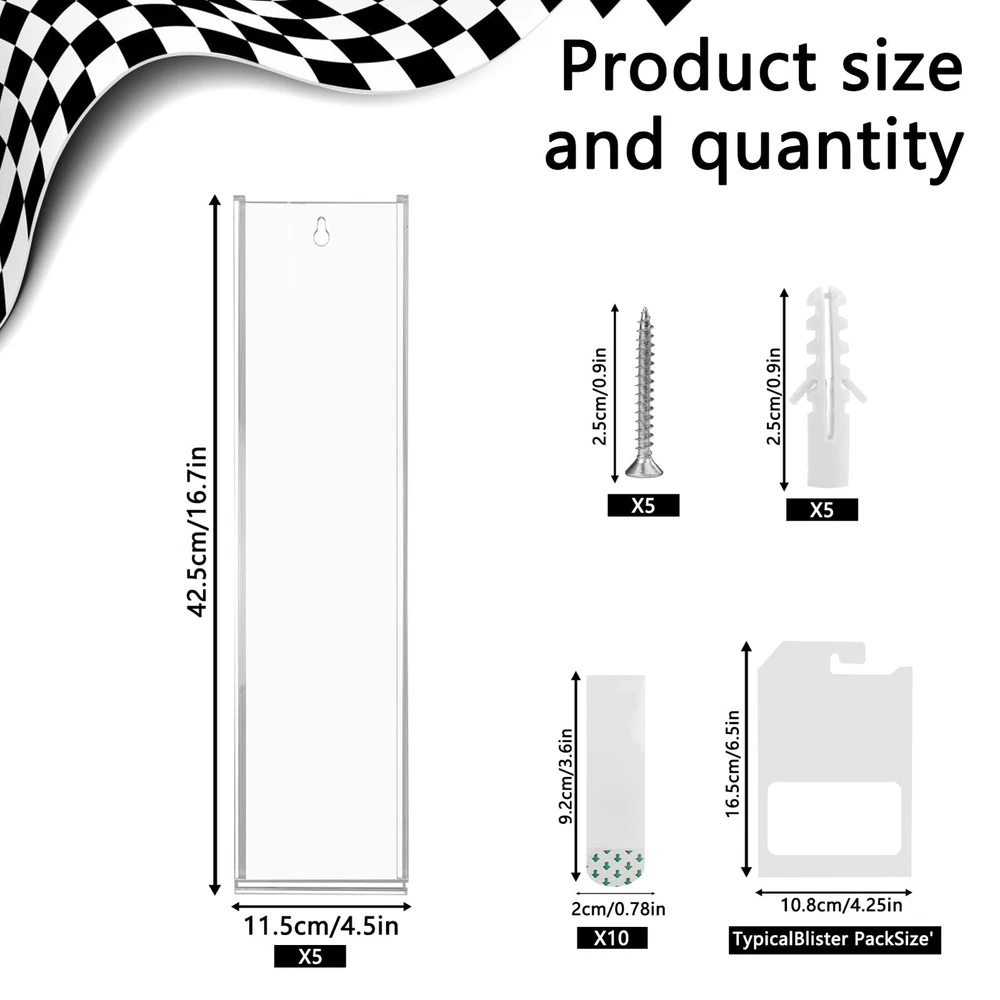 Specifications: Material: Acrylic Color: Clear Dimensions: Oil drip pan: 16.5 x 4.5 x 0.4 inches/42.5 x 11.5 x 1 cm Package includes: 5 Pack Acrylic Model Car Display Case Wall Mount What You Will Get: The package contains a total of 5 model car display case wall mount, which can hold 45 to 50 toy cars, it is the perfect solution for you to store and display your toy cars, you will get enough value for money, the quantity can meet your daily various uses and displays. Note: The package only contains display case for packaged cars, model car toys are not included. Clear and Transparent Acrylic Material: This toy car organizer display shelf is made of acrylic, the thickness is up to 3mm, the corners are set with reinforcement, it is more solid compared with other models in the market, it will not break and can be used for a long time, clear and transparent appearance design, so that you can take out the model cars you want easily and quickly, and at the same time, it can be used as a store sales display, it is very convenient to use. Suitable Size: Each collectible car display wall mount measures 16.5 x 4.5 x 0.4 inches/42.5 x 11.5 x 1 cm, which can perfectly fit for 6.5 x 4.25 inches/16.5 x 10.8 cm model car packages and can successfully display 45-50 toy cars. Note: Please double check the product size before ordering to make sure the model car package is suitable. Installation: The transparent toy car showcase has two mounting methods, you can choose to use non-marking adhesive strips for non-destructive mounting or expanding screws for permanent wall mounting, which is more stable and firm, after the mounting is completed, you just need to insert the packaged model car wraps into the slots for an all-around display. After-sales Service and Guarantee:We are committed to creating high-quality products and improving users' shopping experience! If you have any related issues after receiving the product, please contact us in time. We will solve your trouble in time within 6 hours.