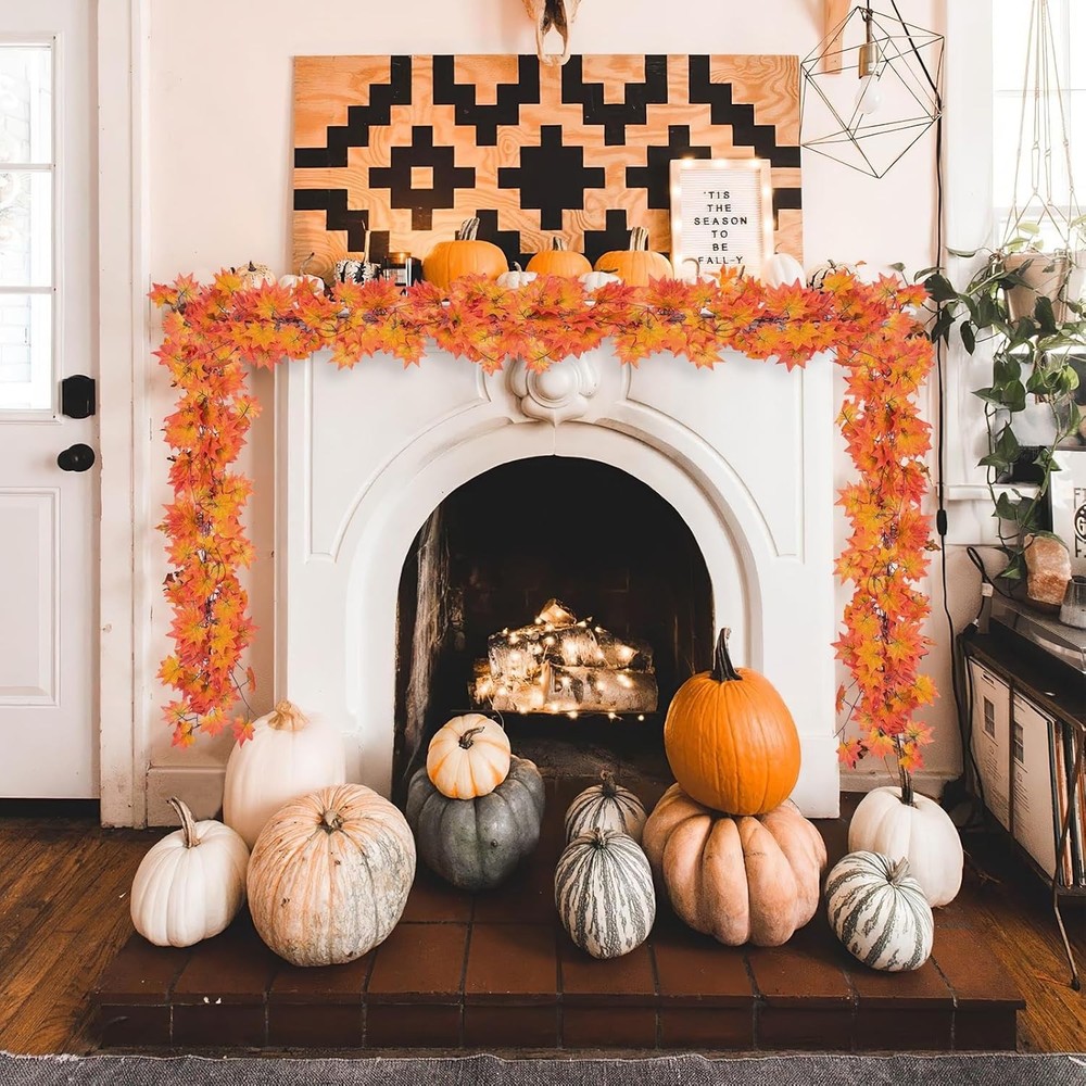 $ 17.953 Pack 5.9Ft Fall Maple Leaf Garland Orange Autumn Decor