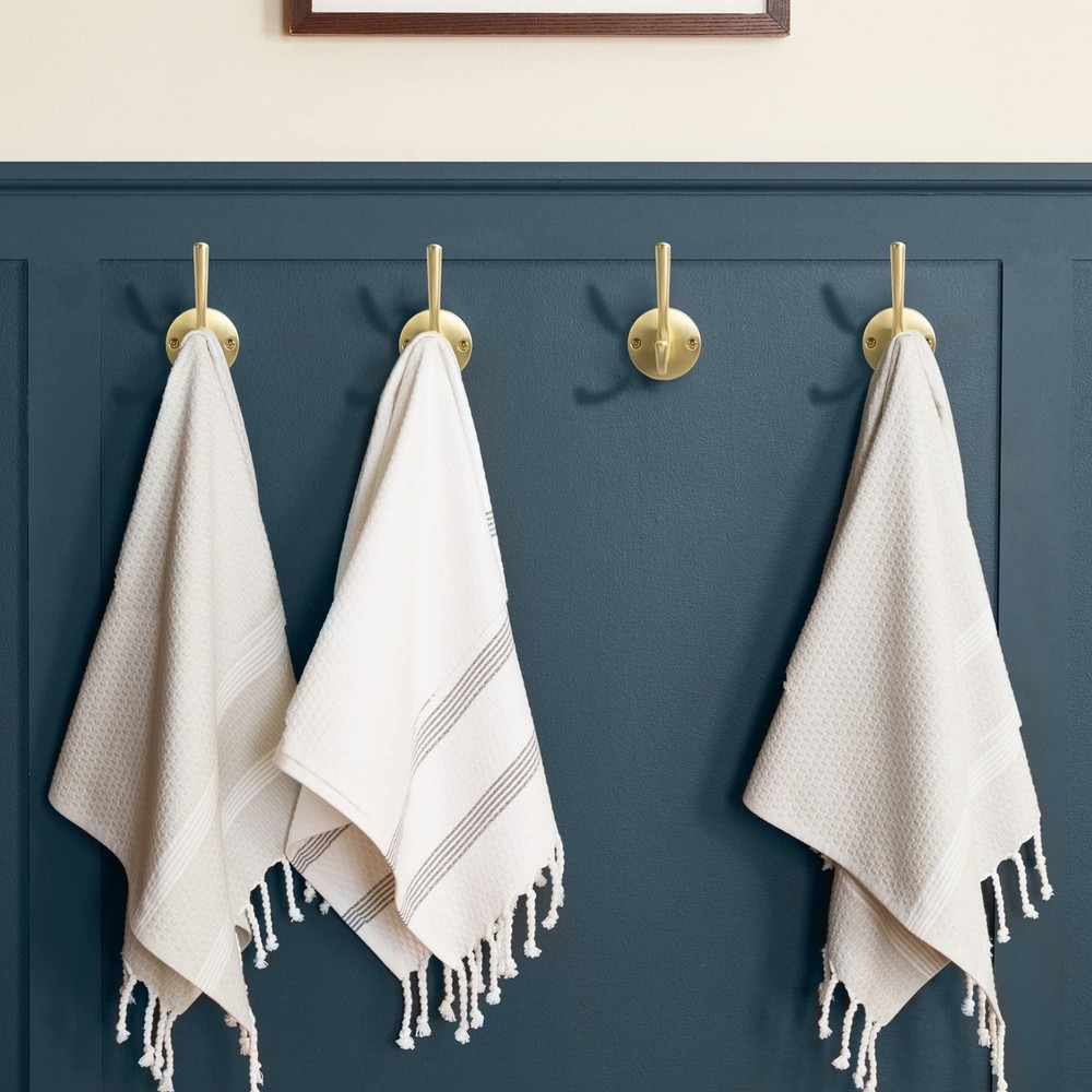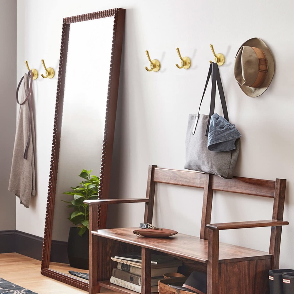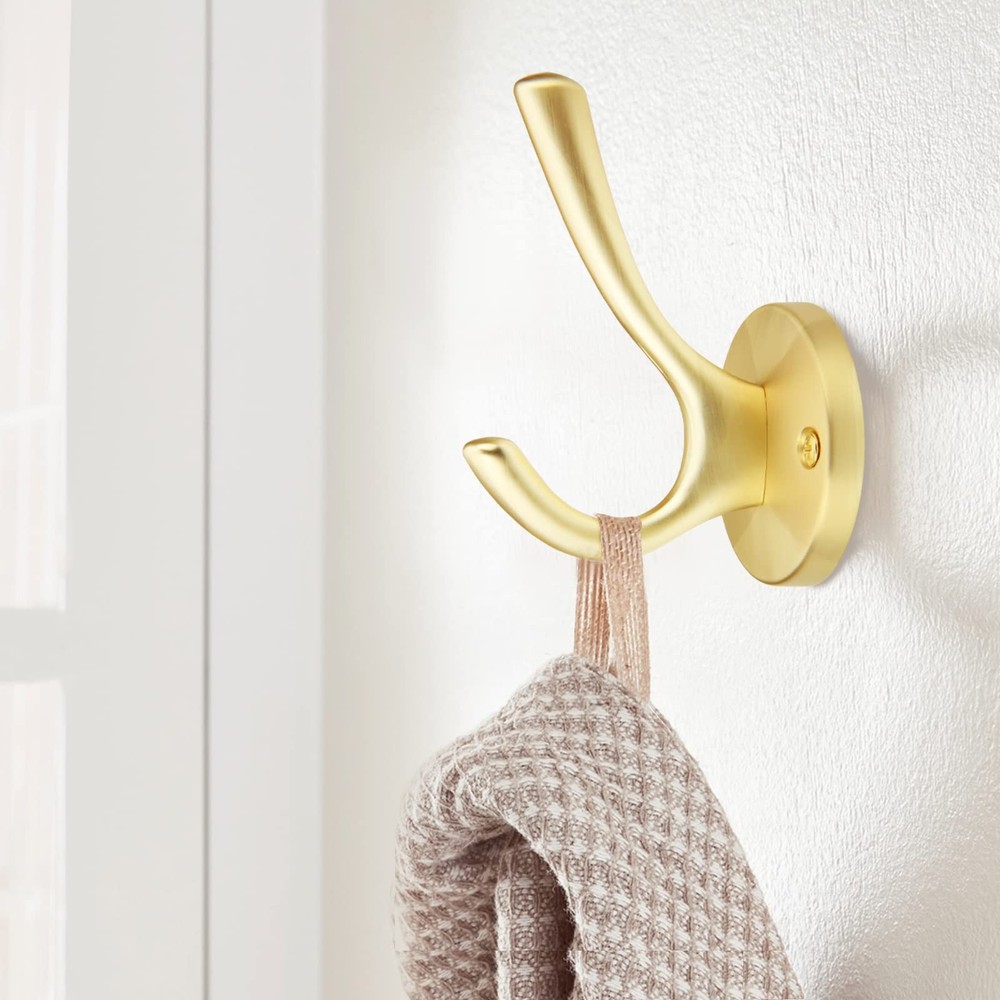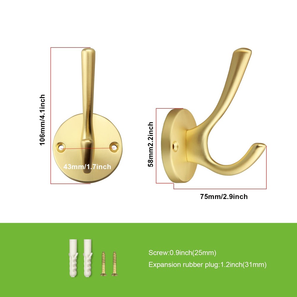 Wide range of applications: Towel hooks are designed with double hooks, hanging jackets, coats, hats, scarves, towels, keys, umbrellas, bags, Christmas stockings and Christmas wreaths to keep your home organized. Perfect for bathrooms, bedrooms, kitchens, closets, hallways, entrances and more. Recommended for installation on solid wood or wooden surfaces. Just choose where you want to install. Drill holes and screw the wall hooks into place for easy installation. 1. 100-Day Quality Guarantee: Rest assured that 's high-quality handles will serve you well. If any quality issues arise within 100 days, we'll either replace your purchase. High Quality: Made of solid zinc alloy, it is strong, durable and easy to install. Beautiful in appearance and delicate in touch, it can easily support a weight of 55 pounds (about 25 kg). Size: Overall Length: 4.8"(122MM); Width: 1.8"(48.5MM);high:2.4"(63.2mm); weight:4.9oz Please double check the size of coat hook you need before purchasing. What's included: 5 Towel hooks and 5 Mounting Accessories (2Flat head self-tapping screw (0.98"(~25mm))1Fixed iron(1.4"(36mm)*1.5"(38mm))2Expandable rubber stopper(1.2"(31mm) 1 Allen wrench(1.77"(45mm)1Hexagon socket set screws(0.3"(8mm) ).Each hook has its own packaging, effectively preventing collisions and scratches. Wide range of applications: Towel hooks are designed with double hooks, hanging jackets, coats, hats, scarves, towels, keys, umbrellas, bags, Christmas stockings and Christmas wreaths to keep your home organized. Perfect for bathrooms, bedrooms, kitchens, closets, hallways, entrances and more. Recommended for installation on solid wood or wooden surfaces. Just choose where you want to install. Drill holes and screw the wall hooks into place for easy installation.