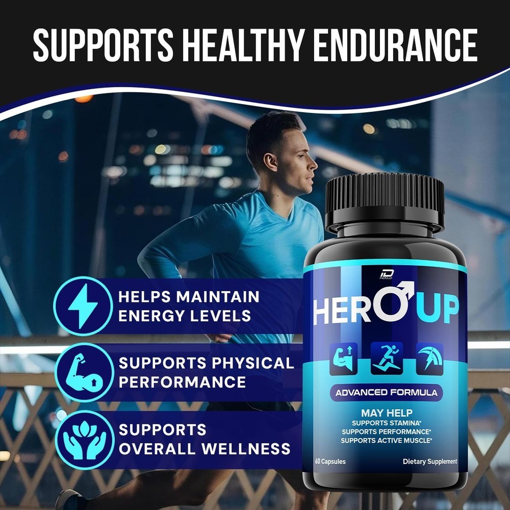 Hero Up for Men capsules are designed specifically for men's health, providing a Vitamin Complex formula in a convenient capsule form. With ingredients such as Tongkat Ali, Horny Goat Weed, and Saw Palmetto, these pills are formulated to boost energy and support overall well-being. Made in the United States, the all-natural blend includes Magnesium Stearate, Calcium Carbonate, and various amino acid chelates for optimal results. With 60 capsules in a pack. Support Your Daily Performance: Hero Up is formulated to support energy and focus throughout demanding days. Designed for Consistent Energy: Hero Up intended to complement your lifestyle choices in maintaining steady energy levels for work, fitness, and daily activities. Advanced Formula Capsules: Benefit from the comprehensive Hero Up Formula Capsules, which are thoughtfully designed for all-day support, potentially contributing to your overall well-being. Complements Fitness & Well-being Goals: Integrate Hero Up into your routine as part of your overall approach to achieving fitness objectives and supporting general wellness. Simple Daily Addition: Each bottle contains 60 capsules, offering a convenient way to make this supplement a consistent part of your daily health and wellness plan.