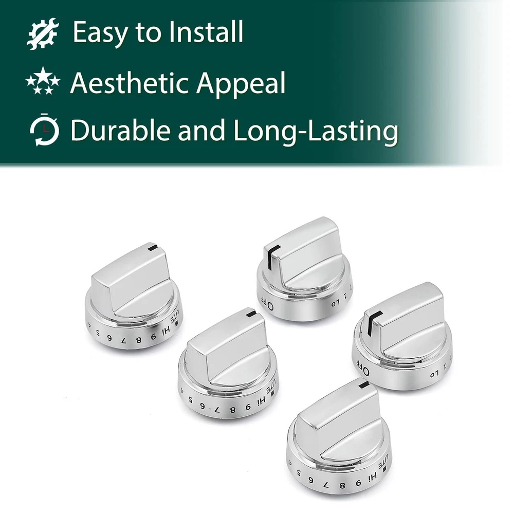 5Pack Stainless Steel Control Knob Compatible with GE Gas Range Stove WB03X24818