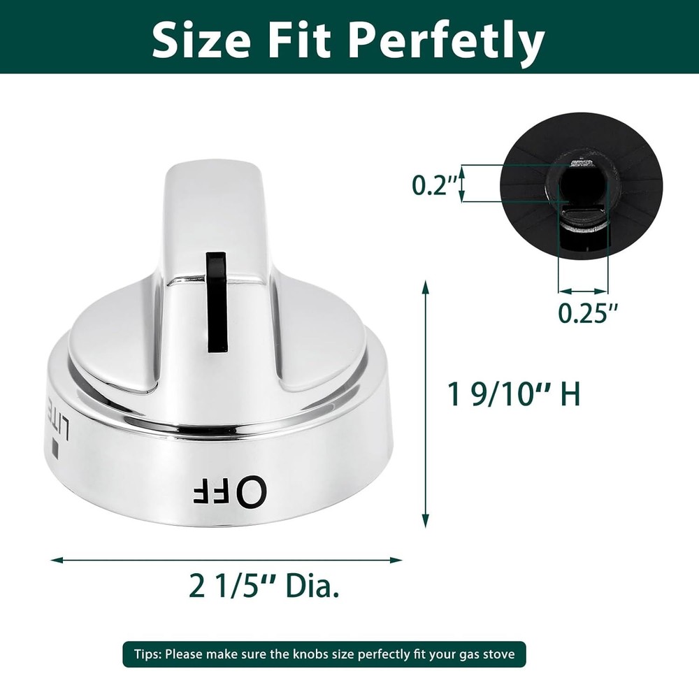 Description: Wide Application: Surface burner knob WB03X24818 lets you control the heat of the surface burner on the range. WB03X24818 Knob Replaces AP5989029, PS11729081 Compatible with ge gas stove. Applicable to the following models, not all: JGBS62REK1SS, JGBS66REK3SS, JGB860EEJ2ES, JGB860SEJ2SS, JGB860SEJ1SS, JGB720SEJ4SS, JGB720SEJ5SS, JGB645EEK2ES, JGB720EEJ4ES, JGB720EEJ2ES, etc. Check your furnace model and find out the part number of the knob that is campatible with it. Upgrade Quality: Our wb03x24818 gas stove knobs are made of highly durable materials, and the threaded mounting holes are reinforced with additional iron pieces, rigorously tested, compact & sturdy, heat resistance and wear resistance. After treatment, the surface of stainless steel has more texture and luster. Product Specification: Finish Type: Stainless Steel. Item Dimensions LxWxH: 2.25 x 2.25 x 1.9 inches. Shape: Round. This knob features bold markings for OFF, Lo, 1, 2, 3, 4, 5, 6, 7, 8, 9, Hi, and LITE. Our gas stove knobs which can help your stove look more uniform and beautiful. Easy Installation: Pull the knob directly from the column, remove it, and replace it with our knob. It is pretty easy to replace new parts on your model. Do not bend the knob up or down. If a handle is particularly stubborn, use pliers to remove it. Align the new knob holes and push them directly onto the shaft until they stop rotating. Repairing appliances by yourselves will save time and money. Please see Model Number fitment information at the bottom of this page before placing your order for this part. Package Included: 5 x Range Control Knob WB03X24818 Part Number WB03X24818 (AP5989029) replaces 4363588, PS11729081. Color: Silver On Jan 8, 2026 at 19:41:02 PST, seller added the following information: