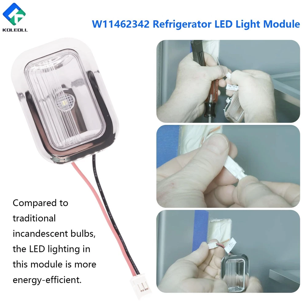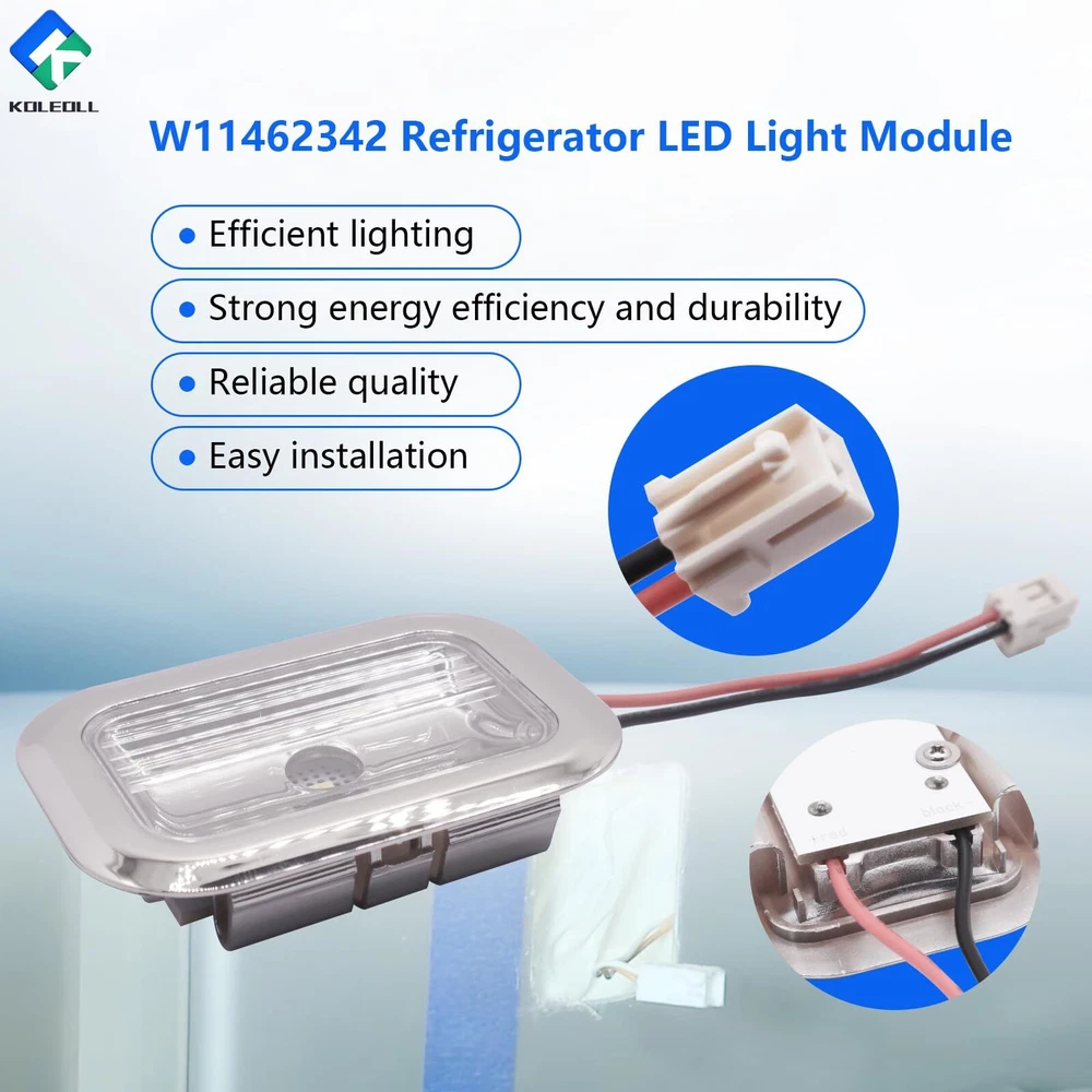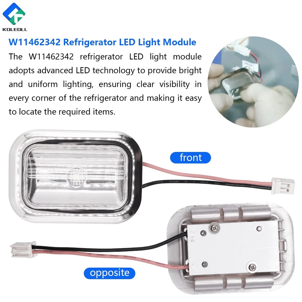 Fits for: JB36NXFXLE00-MAC JB36NXFXLE01-MACJB36NXFXRE00-MAC JB36NXFXRE01-MAC JF36NXFXDE00-MAC JF36NXFXDE01-MACJF42NXFXDE00-MAC JF42NXFXDE01-MAC JF42NXFXDE02-MAC JS42NXFXDE00-MAC JS42NXFXDE01-MACJS42PPDUDE00-MAC JS42PPDUDE01-MAC JS42SSDUDE00-MAC JS42SSDUDE01-MAC JS48NXFXDE00-MAC JS48NXFXDE01-MACJS48PPDUDE00-MAC JS48PPDUDE01-MAC JS48SSDUDE00-MAC JS48SSDUDE01-MAC KBBL206EPA00-WPL KBBL206EPA01-WPLKBBL206ESS00-WPL KBBL206ESS01-WPL KBBL306EPA00-WPL KBBL306EPA01-WPLKBBL306ESS00-WPL KBBL306ESS01-WPL KBBR206EPA00-WPL KBBR206EPA01-WPLKBBR206ESS00-WPL KBBR206ESS01-WPL KBBR306EPA00-WPL KBBR306EPA01-WPLKBBR306ESS00-WPL KBBR306ESS01-WPL KBFN402EPA00-WPL KBFN402EPA01-WPLKBFN402EPA02-WPL KBFN402ESS00-WPL KBFN402ESS01-WPL KBFN402ESS02-WPL KBFN406EPA00-WPL KBFN406EPA01-WPLKBFN406ESS00-WPL KBFN406ESS01-WPL KBFN502EBS00-WPL KBFN502EBS01-WPLKBFN502EBS02-WPL KBFN502EPA00-WPL KBFN502EPA01-WPL KBFN502EPA02-WPLKBFN502ESS00-WPL KBFN502ESS01-WPL KBFN502ESS02-WPL KBFN506EBS01-WPL KBFN506EPA00-WPLKBFN506EPA01-WPL KBFN506ESS00-WPL KBFN506ESS01-WPL KBSD602ESS00-WPL KBSD606ESS00-WPLKBSD608EBS00-WPL KBSD608ESS00-WPL KBSD612ESS00-WPL KBSD618ESS00-WPL KBSN602EPA00-WPL KBSN602ESS00-WPLKBSN608EPA00-WPL KBSN608ESS00-WPL KRFF507EBL00-WPL KRFF507EBL01-WPLKRFF507ESS00-WPL KRFF507ESS01-WPL KRFF507EWH00-WPL KRFF507EWH01-WPL KRFF507HBL00-WPL KRFF507HBS00-WPLKRFF507HPS00-WPL KRFF507HPS01-WPL KRFF507HWH00-WPL KRFF707EBS00-WPL KRFF707ESS00-WPLKRFF707ESS01-WPL KRMF606ESS00-WPL KRMF606ESS01-WPL KRMF706EBS00-WPL KRMF706EBS01-WPLKRMF706ESS00-WPL KRMF706ESS01-WPL KRMF706ESS02-WPL and etc. Fits for W10607479 W10843339 W065 AP6989197 PS16218086. For more models, please refer to Product Description. Efficient Lighting: The W11462342 Refrigerator LED Light Module utilizes advanced LED technology to provide bright and uniform illumination, ensuring clear visibility in every corner of your refrigerator and facilitating easy location of your desired items. Energy Efficiency and Durability: In comparison to conventional incandescent bulbs, the LED lighting featured in this module is more energy-efficient, resulting in reduced power consumption and an extended lifespan. This not only lowers energy expenses but also minimizes the need for frequent bulb replacements. Quality Validation: The W11462342 Refrigerator LED Light Module is a meticulously designed and validated high-quality component, providing a dependable and long-lasting lighting solution for your refrigerator. This instills confidence in the performance and durability of your refrigerator's illumination. Simplified Installation: Installing the W11462342 LED Light Module is uncomplicated and requires no specialized skills. Refer to the provided installation guide or the manufacturer's instructions for a trouble-free replacement process at home, saving you time and effort.