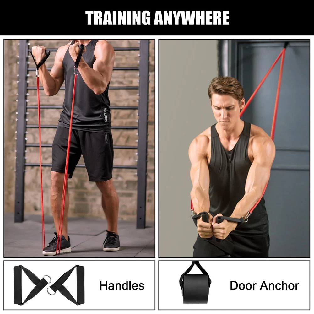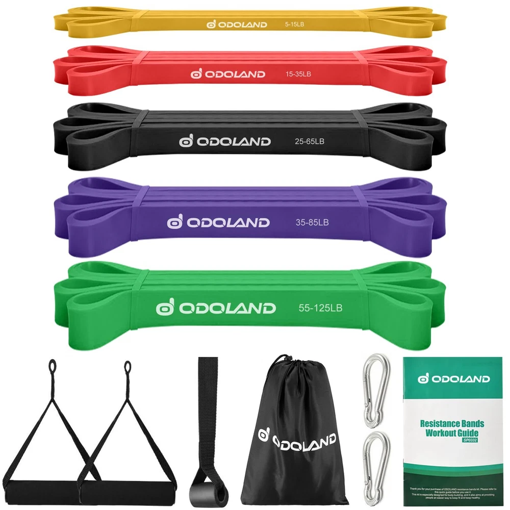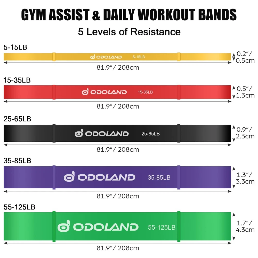 5 Different Power Level Bands: 5 different colors and clear weight indications are for 5 different power levels: yellow 5-15LB, red 15-35LB, black 25-65LB, purple 35-85LB, green 55-125LB. You can use only 1 band or 2 different bands at one time to get the power level you want while doing pull-ups or daily workout. GYM Assistance & Daily Workout: This resistance gym band kit is not only perfect for GYM assistance, like pull-ups, power lifting, push-ups, barbell assist and dumbbell assist; but also the best choice for daily workout. Super-Portable with Free eBook: This resistance band set comes with a storage bag, light weight and takes little space in your bag. Detail free eBook can be down to your mobile phone, doing exercise in anytime! You can take it at home, to gym, office or take it on your trip. With it you can do resistance band workouts wherever you go! Multi-Ways for Workouts: You can do workout using only one assist band or two different bands. Besides, you can do resistance band workouts using 1 band with door anchor, with 2 handles, with 1 anchor and 2 handles, with dumbbells, or with barbells. Just choose the way that fits you the best. High-Plastic and Durable: All resistance bands from are made of heavy-duty material so as to avoid easy breakage or tearing. They are high-plastic and can be used for a longer time than other products in the market.