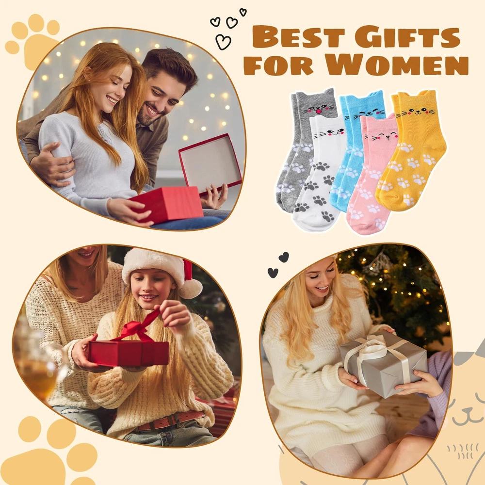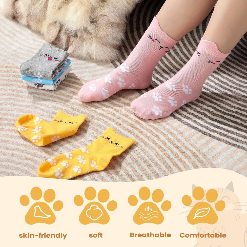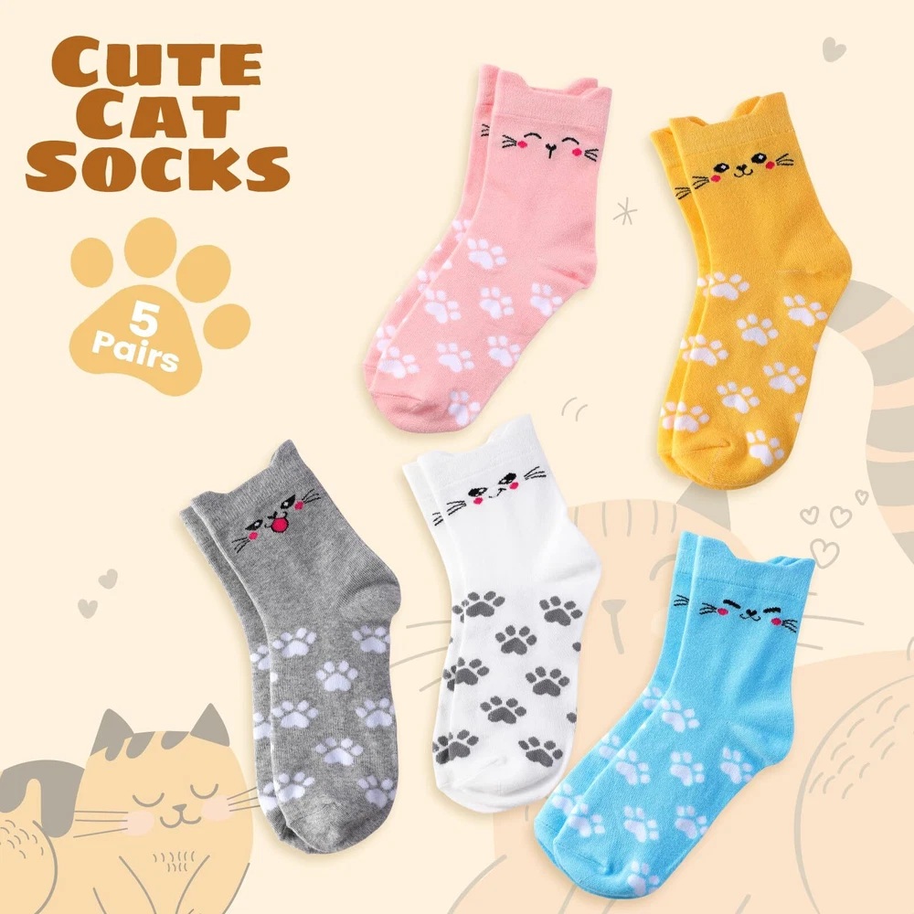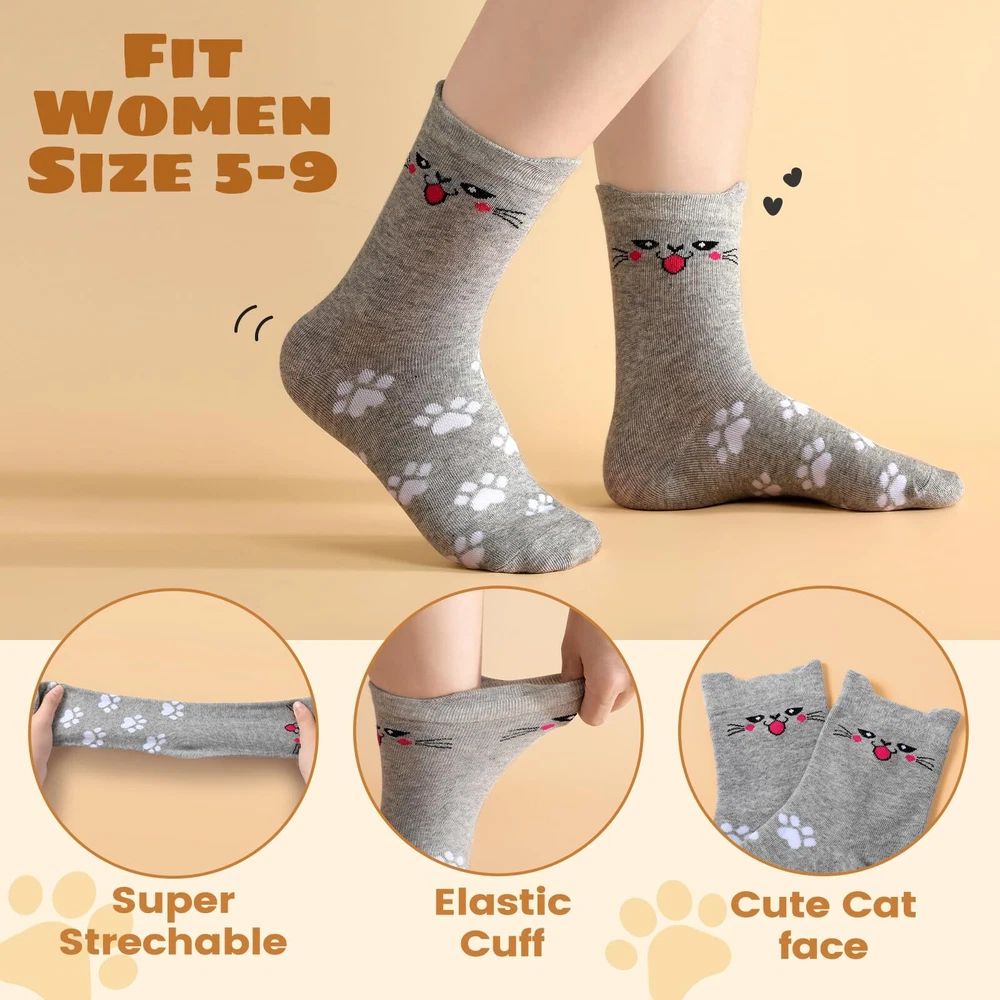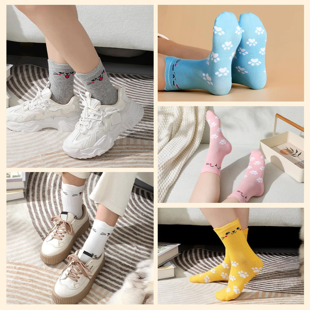 5 Pairs Women’s Cat Socks: Colorful, Cute, Cozy Animal Crew Socks PREMIUM MATERIAL - Our cute cat socks are made of high quality material, so they are soft, stretchy, comfortable, lightweight and wearable. These colorful cute animal socks are perfect for keeping your feet dry and comfortable even in cold winter. CUTE ANIMALS SOCKS - These womens socks are printed with a variety of cute cat, dog face and other animals patterns to add a lovely and playful look to your outfit. These novelty socks can inadvertently show your style and preferences, and you can choose different colors to match your outfits. A set of 5 pairs with different cute patterns. SIZE & CARE - These women cat socks are so stretchy, designed to fit most women feet with a US size range of 5-9. And the elastic band at the ankle helps keep them in place and prevents them from slipping down. Both machine and hand washing are supported. MULTI-FUNCTION - Whether you are resting at home or going out for entertainment these socks are very suitable, these cute fun socks are of moderate thickness, comfortable and sweat absorbing, keeping your feet warm and dry, suitable to wear all year round, giving you all day comfort. They can be used as sleep socks, exercise socks and home socks. EXCELLENT GIFT CHOICE - With cute cat/dog pattern and easy-matching colors, our warm winter cute socks can be as birthday gifts/christmas gifts for women, friends, wife, mother, girlfriend, etc. Send your care and love and brighten up those cool weather days with these cute socks. Description 5 Pairs Cat Socks for Women, Colorful Cute Animals Crew Socks Funny Socks Novelty Cat Socks, Soft Knit Cozy Socks Shipping We offer FREE shipping on all orders! We ship within Three business days of payment, usually sooner. We use a selection of shipping services such as UPS, FedEx, USPS etc. We only ship to the lower 48 states, no APO/FPO addresses or PO Boxes allowed. Local pickups and combined shipping options are not provided at this time. Return You can return a product for up to 30 days from the date you purchased it. Any product you return must be in the same condition you received it and in the original packaging. Please keep the receipt. Payment We accept payment by any of the following methods: PayPal Please pay as soon as possible after winning an auction, as that will allow us to post your item to you sooner! Feedback Customer satisfaction is very important to us. If you have any problem with your order, please contact us and we will do our best to make you satisfied. Contact Us If you have any queries, please contact us via ebay. We usually respond within 24 hours on weekdays. Please visit our eBay store to check out other items for sale! Thank you for shopping at our store.