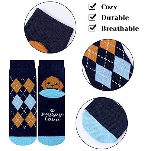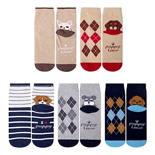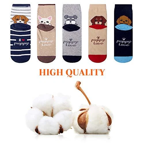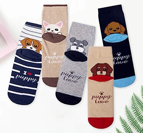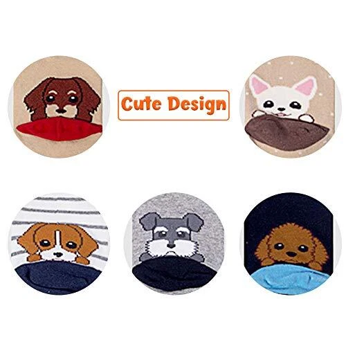 5 Pairs Womens Cute Socks Dog Cat Medium Dark Blue Khaki Apricot Gray Blue