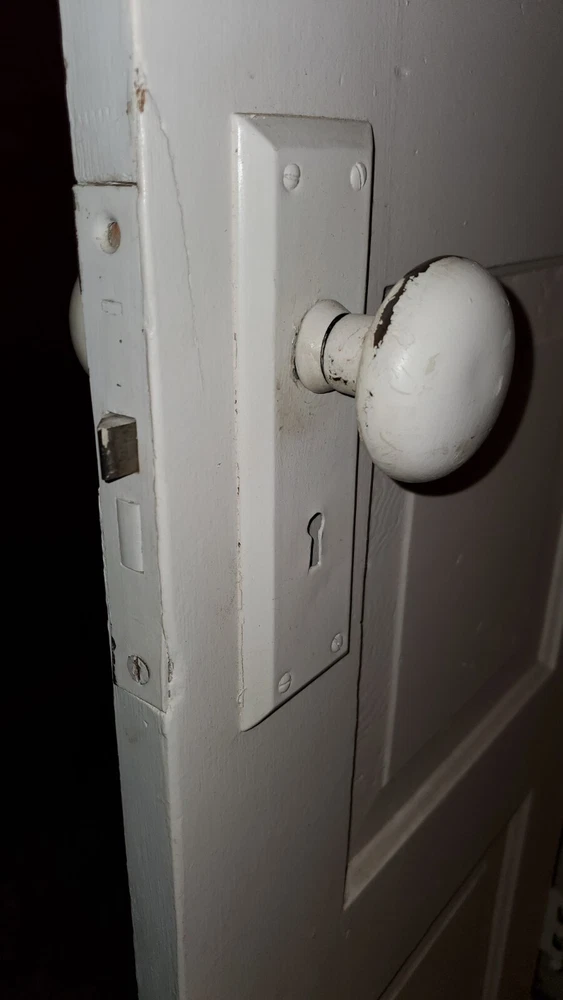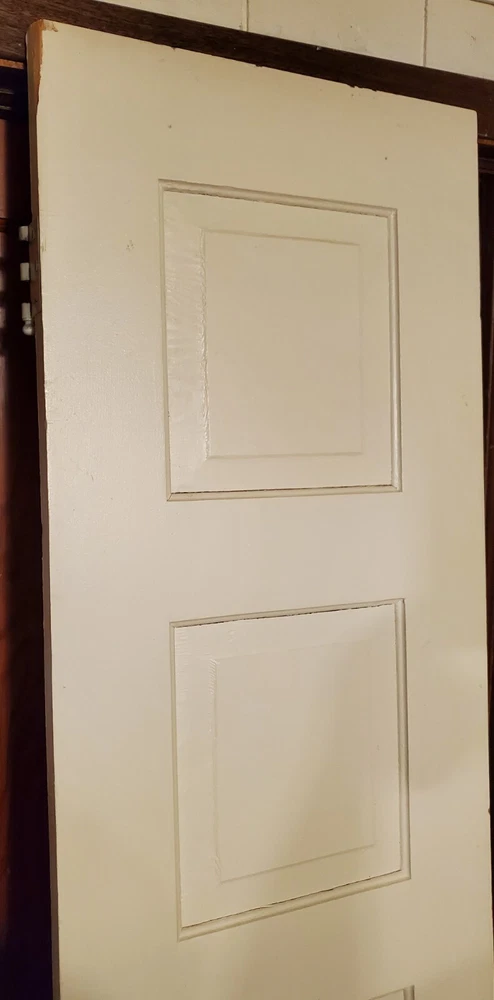 This door is a special 7 foot tall 17 7/8" wide and actual 1 Inch thick. Solid wood. FROM A home over 105 years old. This appears to be original. 5 panel and 1 of 1 if you've shopped these. With original door knobs skeleton key hole (no key). Panels measure around 9 3/4" h x 10 3/4" wide.........34" from bottom of the door to door knob center and 2 3/8" to center of knob. Originally a left hand swing but can be altered by most craftsman. Door knobs will be shipped off along with any hardware sticking out to minimize damage. Enjoythis! ......................................................................SHIPPING TIME: That day label and shipped depending on weekend or holiday hours. Could arrive in 1 week and 2 weeks latest depending on shipper. Sold asis good quality door painted white