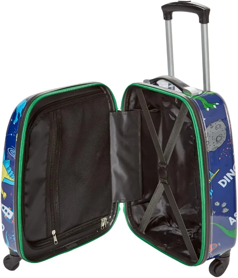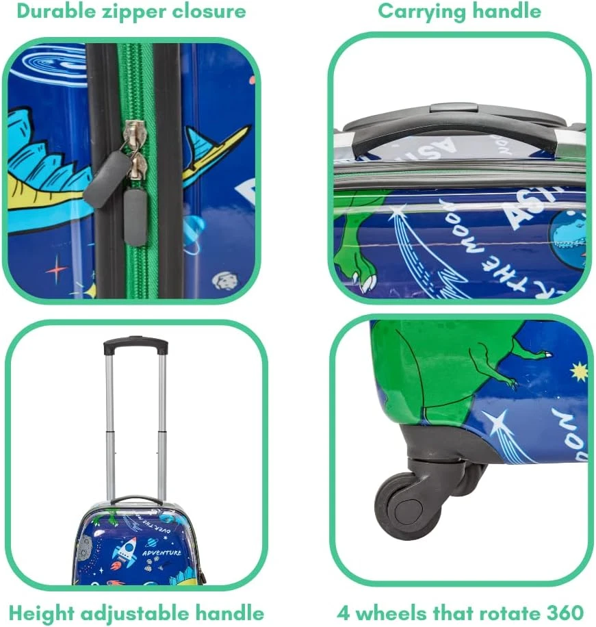 Store New Arrivals Add to Favorite View Feedback Contact 5 Pc. Boys’ Dinosaur Space Rolling Suitcase Set with Backpack, Neck Pillow, Water Bottle, and Luggage Description Item model number RF10023 Style Dinosaur Space Capacity Total 1 Centiliters Product Dimensions 16 x 12 x 8 inches Country of Origin China Item Weight 5.49 pounds Department Boys CARRY ON BOYS LUGGAGE SET WITH WHEELS – Boys will love the dino astronaut print, and parents will love the practical and durable design. The roomy interior of the 16 inch hard side suitcase holds all he needs for weekend trips and sleepovers, with interior mesh pockets and secure strap closures. COMES WITH A 16 INCH DINOSAUR BACKPACK - The matching printed backpack has a special band that easily attaches it to the extended luggage handle. It has padded adjustable straps, a front zip pocket, reflective strips, and side mesh pockets. INCLUDES TRAVEL ACCESSORIES - The set comes with a matching dinosaur printed BPA free water bottle, luggage tag to be personalized (4” x 2.5”), and neck pillow with snap closure (12” x 4” x 10”). RETRACTABLE HANDLE – For easy travel, the telescopic handle can be safely stored. This set makes it easy for kids to pack and manage their own luggage. IDEAL FOR TRAVEL WITH KIDS 5+ and Up – The 16 inch suitcase fits in plane overhead compartments. High quality wheels that rotate 360 degrees make it easy to pull, and it’s lightweight so kids can maneuver it easily. Product Description Travel Accessories Luggage Tag Neck Pillow Dino Printed Water Bottle Luggage Key Features Double Zipper Closure Height Adjustable Handle 4 Wheels that Rotate 360 Carrying Handle Backpack Attaches to Luggage For Easy Travel ABOUT US We offer the best prices around on high quality products. Our E-store includes media such as books, movies, music and games while offering electronics, toys, sporting apparel, clothing, tools, general home, garden items and more. SHIPPING We are always working hard to ensure your package arrives as soon as possible. Please understand that some factors like weather, high postal traffic, and the performance of shipping companies are outside of our control. We offer free shipping to the lower 48 states and ship within 2 business days of payment, usually sooner. We do not accept P.O. Boxes. Please provide a physical address. For shipping outside of the continental USA, we only use eBay's Global Shipping Program.The item is shipped to KY and then sent to the rest of the world. International customers are responsible for all duties and taxes. Continue to check out in order to calculate costs for shipping the item to your country. Messages regarding eBay's Global Shipping Program MUST be directed at eBay EXCLUSIVELY. RETURNS We offer a 30-Day Return Policy on items which you are not completely satisfied with. You have the option for a full-refund or an exchange of the item. No returns are available on items shipped outside of the USA. PAYMENT We accept PayPal. CONTACT US This page content is yet to come Please ad us to your favorite seller and visit again later Thank You CUSTOMER SATISFACTION We try our very best to make sure every customer is completely satisfied. If there's a problem, message us! We're happy to help. WE ACCEPT Copyright © 2021 AutoDS. | All Rights Reserved