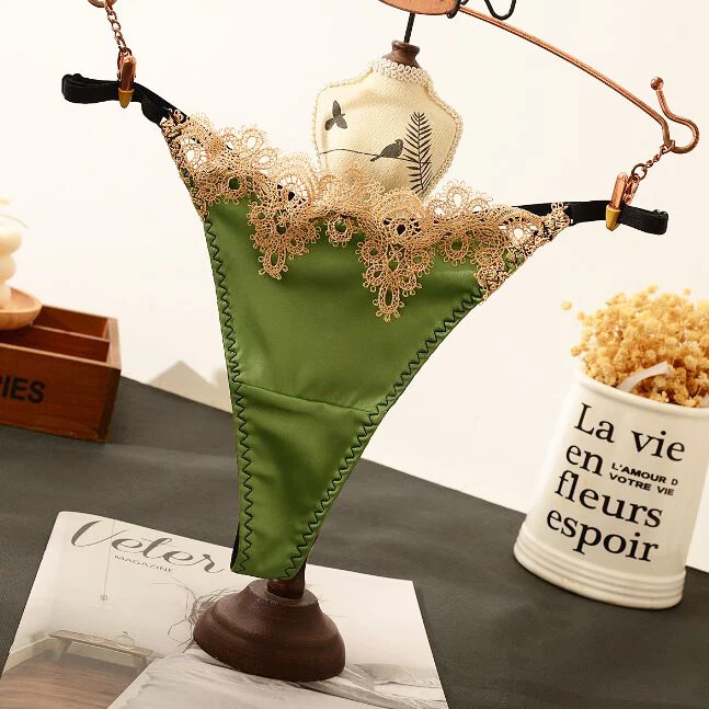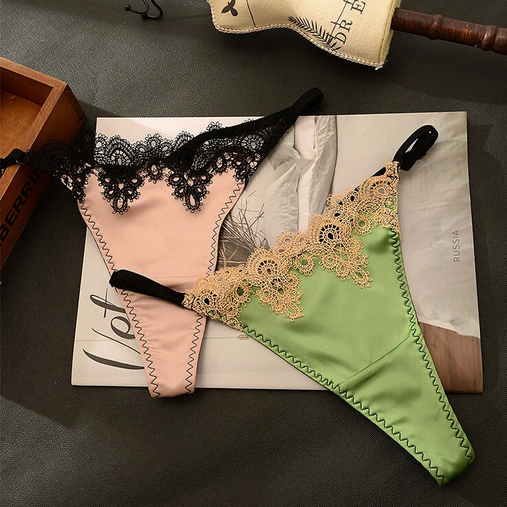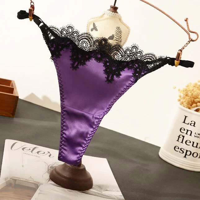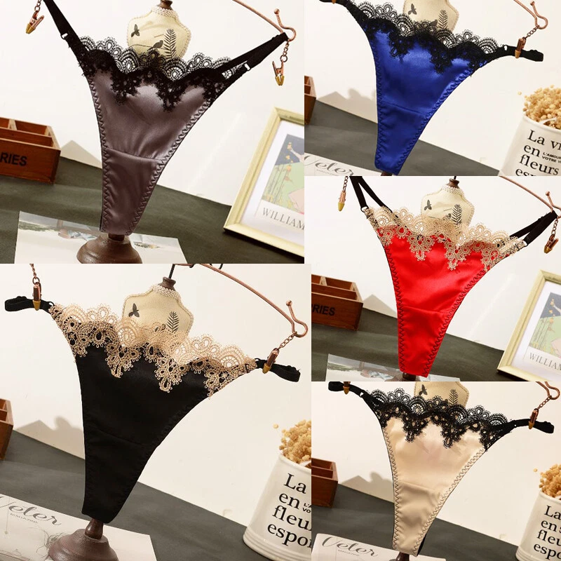 5Pack Lot Sexy Women Satin Panties Underwear Lace G string Thong Bikini Lingerie Product Description Item description *Material: nylon, spandex *Color: solid *Feature: lace trim, t back, high cut, hot *Size: One size fits waist 22''-42'' * What You Get: 5 x Ladies underpants
