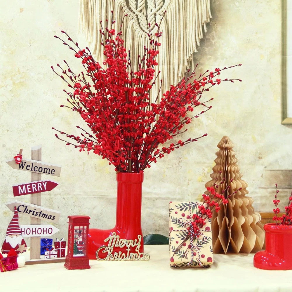 Store New Arrivals Add to Favorite View Feedback Contact OliverStore has been in the US market for over 5 years and offers free delivery to the customer's home with professional customer service 5 Pcs Jasmine Flowers Artificial Red Flowers 29.5" Long Stems Dry Branches with Mini Red Berry for New Year DIY Floral Art Plant Wedding Home Office Table Decorations Description Lifelike Bouquet: 5pcs red artificial flowers are 29.5 inches tall. Each bundle has 12 flexible stems. Christmas flowers feature unique floral swirls with small red berries at the top of the stems. The attractive hues create multi-colored bouquets perfect for DIY flower arrangements that blend perfectly into your personal décor Unique Material: Our red artificial flowers bulk are made of safety plastic, like foam, soft and fluffy. The stem is made of paper-wrapped iron wire, which can be bent or pruned to your preference without worring about scartching your hands during arrangement Adjustable Length: The stem length of jasmine can be adjusted freely. The red fake flowers can be used in a variety of vase styles. For shorter:can be directly bended and pruned; For longer: can graft branches or put into newspaper in a non transparent vase to increase pad height transparent vase can be decorated with stone, leaves Easy to Care: Our fake christmas flowers require no regular care or pruning. Placing him in a decorative vase or something similar will help bring a Pop of Color. Simply, keep them dry and you have a great addition to help liven things up Wide Applications: Suitable for home red decor for vase or venue decoration like living room, dining table, office, wedding, etc. Suitable for Easter, Mothers Day, Valentines Day floral picks decorations to add a festive atmosphere. Also you can use them for DIY crafts Product Description New Year DIY Floral Arrangement The video showcases the product in use. The video guides you through product setup. The video compares multiple products. The video shows the product being unpacked. Artificial Jasmine Flower for Wreath The video showcases the product in use. The video guides you through product setup. The video compares multiple products. The video shows the product being unpacked. Unleash Your Creativity Can be split into multiple small branches. Give the gift of creativity with a selection of artificial flowers for your DIY-loving friends and family. Get ready to create something beautiful! The video showcases the product in use. The video guides you through product setup. The video compares multiple products. The video shows the product being unpacked. Wootkey Carefully Crafted Jasmines Crafted with meticulous attention to detail, perfect for adding a touch of elegance to any space. Fuller, higher quality jasmine flowers reveal the lasting beauty of a timeless bloom that effortlessly enhances your home décor. Different Colors of Artificial Jasmine Spring has finally arrived in all her glory! In this vibrant spring, decorate your room with colorful jasmine, feel the colorfulness of spring, surround yourself with freshness and elegance, and bring a leisurely and comfortable life mood. Wootkey Carefully Crafted Jasmines Crafted with meticulous attention to detail, perfect for adding a touch of elegance to any space. Fuller, higher quality jasmine flowers reveal the lasting beauty of a timeless bloom that effortlessly enhances your home décor. 1 Dining room decor 2 Bedroom decor 3 Living room decor 4 Table decor Multiple ways to decorate What material is the product made of? Our artificial jasmine flowers are made of plastic, like foam, soft and fluffy. The stem is made of paper-wrapped iron wire which can be bent as you like. Can faux jasmines be used for DIY? Of course. Branches can bend to provide more possibilities for DIY. What's more, you can remove the branches and use them as garlands and so on. What size of vase is suitable for these flowers? The long jasmine artificial flowers are suitable for a vase with a height of around 6-12 inches. The stems can be bent and folded when placed in a short vase, and filler can be added in longer vases. Why are the flowers I received not as straight as in the picture? Flowers are packed in a bent shape for easy transportation. It is normal for the stems to be bent, and you can straighten them to reduce the bend or use a tall vase with a smaller mouth. How can I make these beautiful jasmines fit better in my vase? The branch is about 14.2 inches long. For short vases, you can bend or cut the branches; for large vases, you can fill the vase with newspapers, and for transparent vases, you can use stones and leaves to pad the bottom. Wootkey Artificial Flowers Add to Cart Add to Cart Add to Cart Add to Cart Add to Cart Add to Cart Price $9.99 $ 9 . 99 — $8.99 $ 8 . 99 $9.99 $ 9 . 99 $9.99 $ 9 . 99 $13.99 $ 13 . 99 $9.99 $ 9 . 99 Type Jasmine Jasmine Chinese New Year Red Envelopes Princess Birthday Princess Birthday Orchid Princess Birthday Color White Red Red Royal Blue Lake Blue White/Yellow/Pink/Purple/Blue Gold Count 5/10pcs 10pcs 24pcs 26pcs 26pcs 6pcs 26pcs Material Paper, plastic Paper, plastic Paper Paper Paper Silk Paper Size 29.5'' 17.5'' 2 size mixed / / 38'' / Item model number NBT-001 Unit Count 5 Count Room Type Kitchen, Bathroom, Bedroom, Living Room, Dining Room Seasons All, Winter, Autumn, Summer, Spring Plant or Animal Product Type jasmine Color Red Scent Unscented Material Paper, Plastic Country of Origin China Specific Uses For Product Bouquet, Hotel Decor, Home Decor, Office Decor Item Weight 6.4 ounces Size 5pcs-29.5'' Number of Items 5 Occasion Mother's Day, Christmas, New Year, Wedding, Housewarming Package Information Vase Recommended Uses For Product You could mixed them into different arrangements., The stem length of jasmine can be adjusted freely. Special Feature Fade Resistant, Foldable, Eco-Friendly, Wrinkle Resistant Product Dimensions 12"D x 2"W x 16"H Indoor/Outdoor Usage Indoor ABOUT US We offer the bes