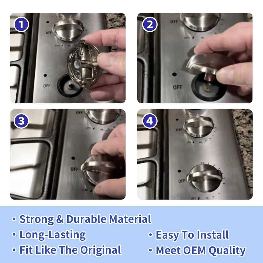 WB03T10284 Knobs Burner Control Knobs Specification: Condition: 100% Brand New and never used Package Includes: 5 x WB03T10284 Burner Knob Material: Premium plastic with a chrome finish Size (approx.): 2.2 inch/ 5.6 cm in handle length, 2.1 inch/ 5.33 cm in knobs diameter. WB03T10284 Ge Appliance Knob Replace Part Numbers: The GE stove knobs only replaces WB03T10284, 1373043, AP4346312, AH2321076, EAP2321076, PS2321076 Ideal Ge Gas Stove Knobs Replacement Easy to install Fit perfectly like original Higher heat-resistance Heavy-duty material and long lasting Reliable and sturdy for long-term use Fit The Following GE Range Stove Model: ECBP82SM1SS ECBP82SM2SS EER4001N01SS EER4001N02SS JB3001R1SS JB3001R2SS JB3001R3SS JB645ST1SS JB645ST2SS JB645ST3SS JB650ED1ES JB650ST1SS JB650ST2SS JB650ST3SS JB655ST1SS JB655ST2SS JB655ST3SS JB680SIT1SS JB680SP1SS JB680SP2SS JB680SP3SS JB680SP4SS JB680SP5SS JB680ST1SS JB680ST2SS JB680ST3SS JB680ST4SS JB700SN1SS JB700SN2SS JB700SN3SS JB700SN4SS JB700SN5SS JB705ED1ES JB705ST1SS JB705ST2SS JB705ST3SS JB705ST4SS JB710ED1ES JB710SN1SS JB710ST1SS JB710ST2SS JB710ST3SS JB710ST4SS JB720SN1SS JB730SN1SS JB740SP1SS JB740SP2SS JB740SP3SS JB770SP1SS JB840SP1SS JB840SP2SS JB840SP3SS JB840SP4SS JB850DP1BB JB850DP1WW JB850SP1SS JB850SP2SS JB850SP3SS JB850SP4SS JB850ST1SS JB855SP1SS JB855SP2SS JB855SP3SS JB855SP4SS JB870SR1SS JB870SR2SS JB870ST1SS JBP74SN1SS JBP77SM1SS JBP77SM2SS JBP77SM3SS JBP77SM4SS JBP77SM5SS JBP81SM1SS JBP81SM2SS JBP81SM3SS JBP84SM1SS JBP84SM2SS JBP89SM1SS JBP89SM2SS JCB850SR1SS JCB850SR2SS JCB850ST1SS JCBP77SM1SS JCBP77SM2SS JCBP81SM1SS JCBP81SM2SS JCBP83SM1SS JCBP83SM2SS JCBP84SM1SS JCBP84SM2SS JCBP85SM1SS JCBP85SM2SS JCSP42SN1SS JCSP42SN2SS JCSP42SN3SS JCSP46SP1SS JCSP46SP2SS JDP42ST1SS JSP42SN1SS JSP42SN2SS JSP42SN3SS JSP42SN4SS JSP46SN1SS JSP46SP1SS JSP46SP2SS JSP46SP3SS Easy to install Step1: Pulling out the old knob vertically Step2: Replacing knob is as simple as aligning knob onto hub Step3: Pushing new knob into place with light hand pressure WB03T10284 Burner Control Knobs Make Your Life Easier On Jan 11, 2026 at 21:53:38 PST, seller added the following information: