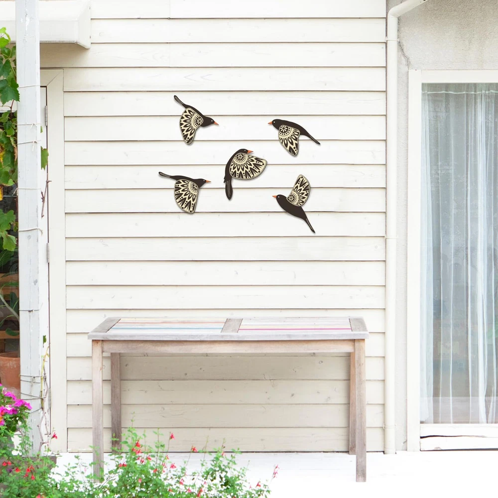 Features: These blackbird wall decors illustrate a minimalist but stylish design. Their simple black color combined with bright wooden beaks offers a modern aesthetic fit for both indoor and outdoor spaces. The wooden bird ornaments infuse a refreshing feel into your spaces. Their presence, whether in bedrooms, living rooms or workspaces, can provide an artistic and calming influence, enhancing the overall ambiance of the area. Specifications: Material: wood Size: approx. About 6.5 x 4.44 inches, 6.5 x 4.41 inches, 6.5 x 4.33 inches, 6.5 x 4.81 inches, and 6.5x 6.07 inches Color: as pictures shown Package includes: 5 x Black bird wall art decors 20 x Round double sided foam tapes Warm notes: Please allow slight size error due to manual measurement. The colors may exist slight difference due to different screen. Package List: this thoughtful package includes 5 pieces of sophisticated black bird wall art decors and 20 pieces of round double sided foam tapes for easy mounting; Each elegant bird is painted in black and with a striking wooden beak that exudes an artistic appeal, adding a refreshing touch to your living spaces Suitable Sized: the black bird art wall decors come in 5 varying sizes of about 6.5 x 4.44 inches, 6.5 x 4.41 inches, 6.5 x 4.33 inches, 6.5 x 4.81 inches, and 6.5x 6.07 inches; Each bird differs subtly, providing you an assortment to choose from according to your preferred arrangement or decorating style Wood Craftsmanship: each piece of our wooden bird decors are crafted primarily from robust and long lasting wooden materials. Their sturdy formation ensures that they don't easily break or deform, promising a longstanding embellishment to your indoor or outdoor spaces Easy and Effortless Installation: with each birds wall art outfitted with a hook, installation is a breeze; These pieces can be effortlessly hung on the spot of your preference, be it indoors or outdoors, with easy assembly and disassembly making redecorating hassle free Versatile Decorative Elements: the wooden birds wall arts are suitable for various spaces within your home or office. They can easily grace the walls of bedrooms, living rooms, kitchens or study rooms. Outdoor spaces, such as gardens, yards, and balconies, can equally benefit from the charms of these art decors