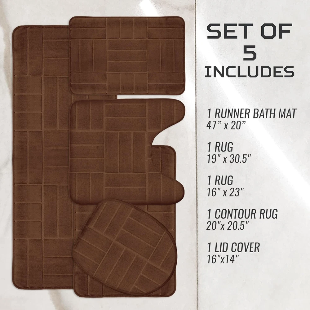 Store New Arrivals Add to Favorite View Feedback Contact 5 Piece Bathroom Rugs Set - Soft Non Slip Memory Foam Large Mats - Perfect Combination of Luxury and Comfort (Brown/Line Design, 5 Piece Set) Description Item model number BR-PARENT Style Modern Weave Type Tufted Age Range (Description) Adult Country of Origin USA Is Stain Resistant No Theme Space Number of Pieces 5 Room Type Bathroom Material Memory Foam Model Name Bathroom rug parent Rug Form Type Bath Mat Item Thickness 0.25 Inches Indoor/Outdoor Usage Indoor Water Resistance Level Water Resistant Is Autographed No Item Weight 4 Pounds Pile Height Low Pile Construction Type Handmade Occasion Housewarming Special Feature Non Slip Color Brown/ Line Design Global Trade Identification Number 00082652916694 Shape Rectangular Back Material Type Polyester Product Dimensions 47"L x 20"W Product Care Instructions Machine Wash Size 5 Piece Set SUPERIOR QUALITY AND COMFORT - The super soft and ultra-comfortable bath rugs, providing stress relief and comfort. Constructed with memory foam and polyester fiber these rugs are able to remain incredibly soft and vibrant over time. NON-SLIP AND ABOSRBENT - These upgraded luxurious memory foam rugs can soak up the water and keep your floor dry, making your feet feel the ultimate luxury experience. Created with breathable material to allow air drying. SET OF 5 INCLUDES - 1 Runner Bath Mat 47” x 20”, 1 Rug 19" x 30.5", 1 Rug 16" x 23", 1 Contour Rug 20"x20.5", 1 lid cover (16"x14") MACHINE WASHABLE - Easily clean with machine wash on cold with gentle detergent and either tumble dry on low or simply lay flat to air dry! Product Description Why Choose Effiliv Rugs? Soft and comfortable The Effiliv rugs are incredibly soft and comfortable for everyday use. High Quality Materials The Effiliv rugs are made from memory foam and water-resistant fibers. Easy To Clean These luxury rugs are easy to clean and easy to maintain Ergonomic Design It's ergonomic designed The Effiliv Bathroom Rugs Set Add to Cart Add to Cart Add to Cart Add to Cart Add to Cart Customer Reviews 4.5 out of 5 stars 2,434 4.5 out of 5 stars 2,434 4.5 out of 5 stars 2,434 4.5 out of 5 stars 2,434 4.5 out of 5 stars 2,434 4.5 out of 5 stars 2,434 4.5 out of 5 stars 2,434 Price $51.97 $ 51 . 97 $51.97 $ 51 . 97 — — $49.97 $ 49 . 97 $49.97 $ 49 . 97 $49.97 $ 49 . 97 Material Memory Foam Memory Foam Memory Foam Memory Foam Memory Foam Memory Foam Memory Foam Back Material Polyester Polyester Polyester Polyester Polyester Polyester Polyester Super Soft? ✔ ✔ ✔ ✔ ✔ ✔ ✔ Non Slip? Yes Yes Yes Yes Yes Yes Yes Strong Absorbent? ✔ ✔ ✔ ✔ ✔ ✔ ✔ ABOUT US We offer the best prices around on high quality products. Our E-store includes media such as books, movies, music and games while offering electronics, toys, sporting apparel, clothing, tools, general home, garden items and more. SHIPPING We are always working hard to ensure your package arrives as soon as possible. Please understand that some factors like weather, high postal traffic, and the performance of shipping companies are outside of our control. We offer free shipping to the lower 48 states and ship within 2 business days of payment, usually sooner. We do not accept P.O. Boxes. Please provide a physical address. For shipping outside of the continental USA, we only use eBay's Global Shipping Program.The item is shipped to KY and then sent to the rest of the world. International customers are responsible for all duties and taxes. Continue to check out in order to calculate costs for shipping the item to your country. Messages regarding eBay's Global Shipping Program MUST be directed at eBay EXCLUSIVELY. RETURNS We offer a 30-Day Return Policy on items which you are not completely satisfied with. You have the option for a full-refund or an exchange of the item. No returns are available on items shipped outside of the USA. PAYMENT We accept PayPal. CONTACT US This page content is yet to come Please ad us to your favorite seller and visit again later Thank You CUSTOMER SATISFACTION We try our very best to make sure every customer is completely satisfied. If there's a problem, message us! We're happy to help. WE ACCEPT Copyright © 2021 AutoDS. | All Rights Reserved