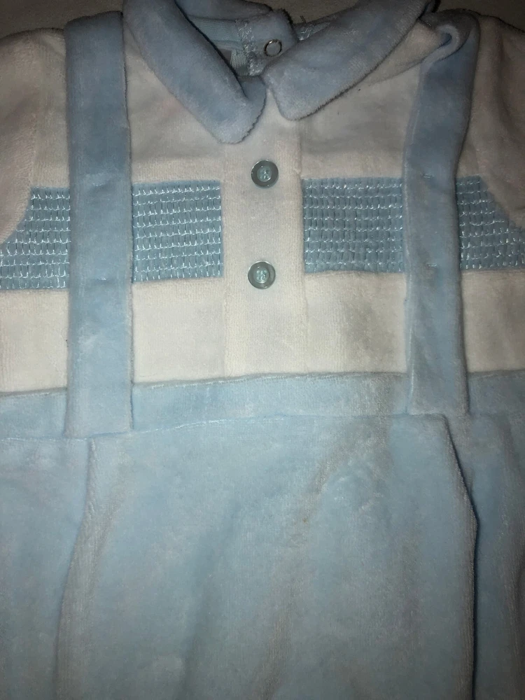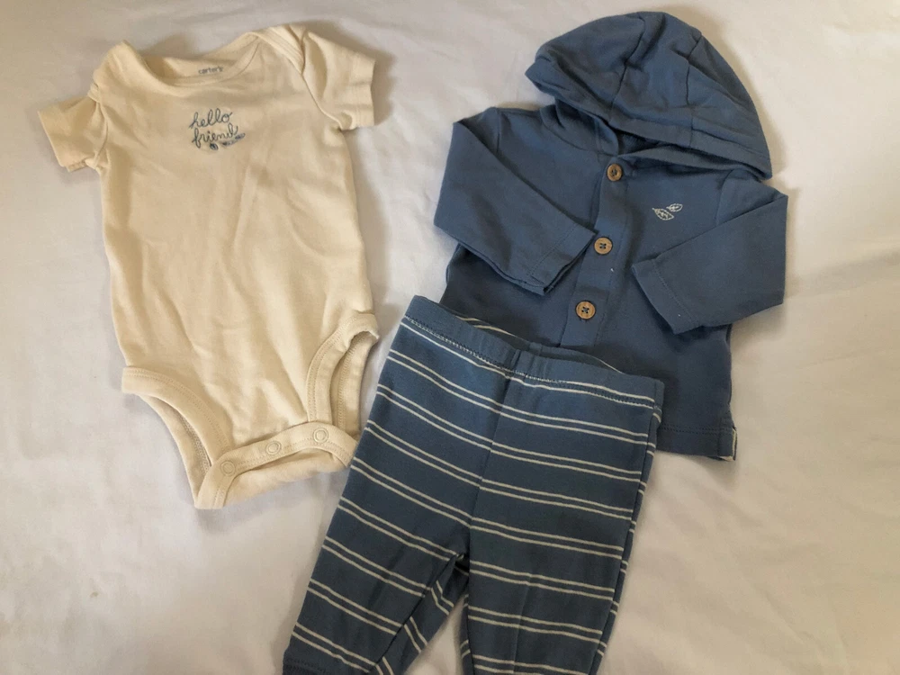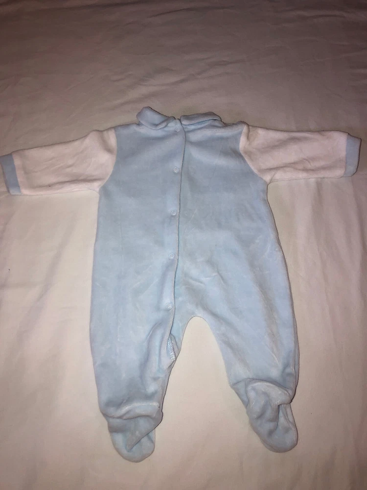 This 5 piece lot of clothing is perfect for your little baby boy! It includes a fleece outfit from a designer baby shop in Scotland, three piece outfit with jacket from Carters, sleep sack from M&S UK, and mittens for Target, all in size 0-3 months. The blue cotton material is soft and cozy, perfect for winter. The clothing is suitable for everyday wear. Whether you're looking for a cute outfit or something practical for your baby, this lot has it all. I loved this sleep sack I now have the bigger size for my baby now, very cozy and easy to get on will last up to 6 months. mittens are not used at all i over bought these and never used them my baby was not a fan of them. the fleece outfit I worn once for photo so cute on and baby got lots of complements. The three piece outfit I love for going out so cute and easy to put on. From a pet and smoke free home
