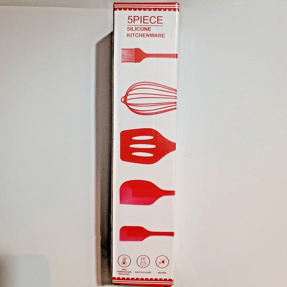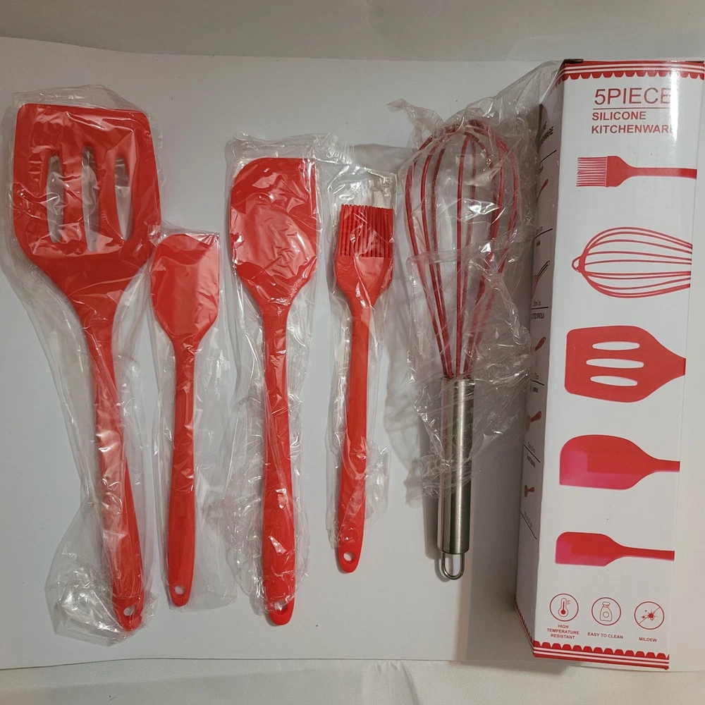 Material: Silicone Handle Material: silicone Brand: Unbranded Number of Items in Set: 5 Type: Spatula Features: Dishwasher Safe, Heat Resistant Color: Red Pattern: Solid Country/Region of Manufacture: China Set Includes: Spatula, Whisk