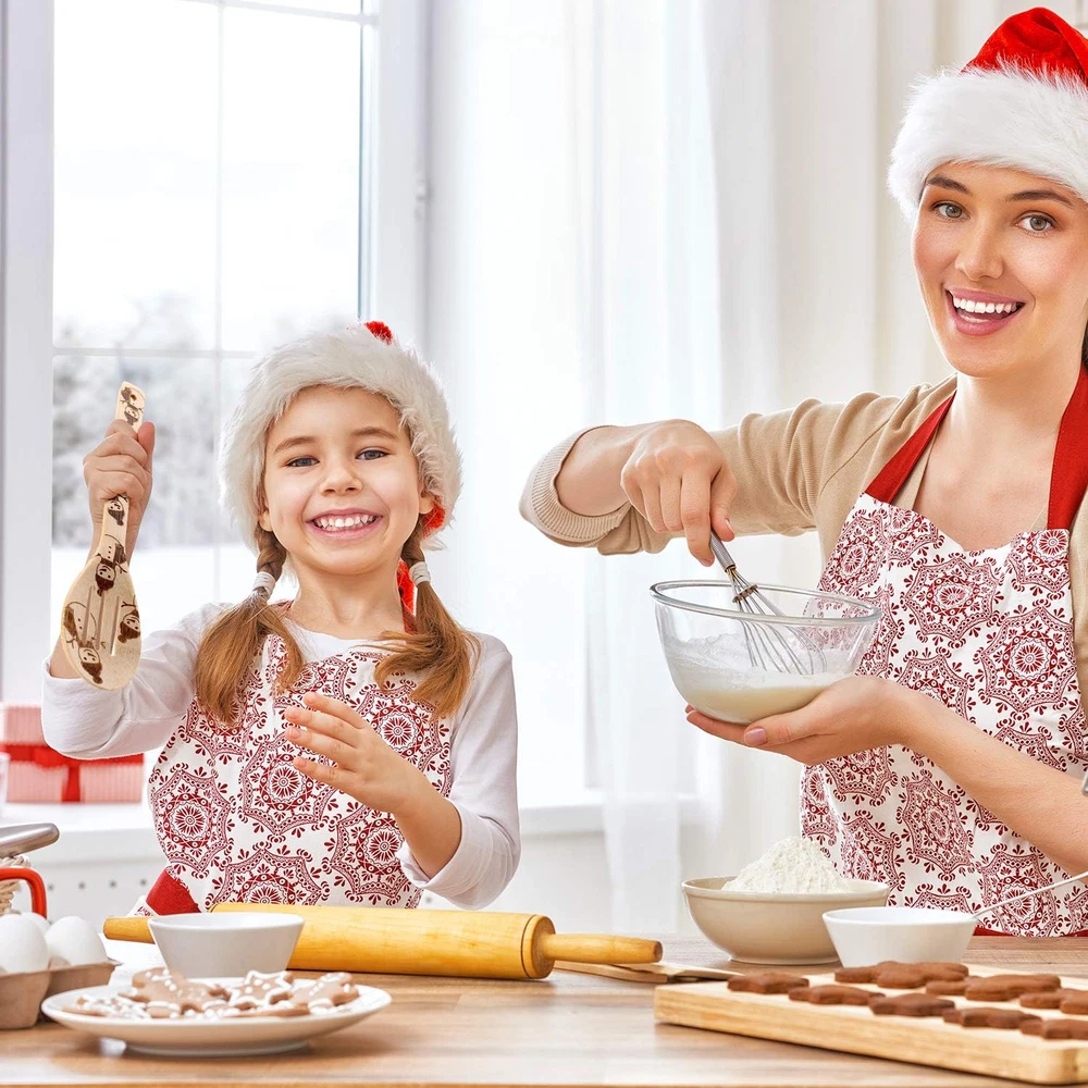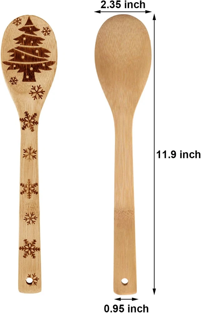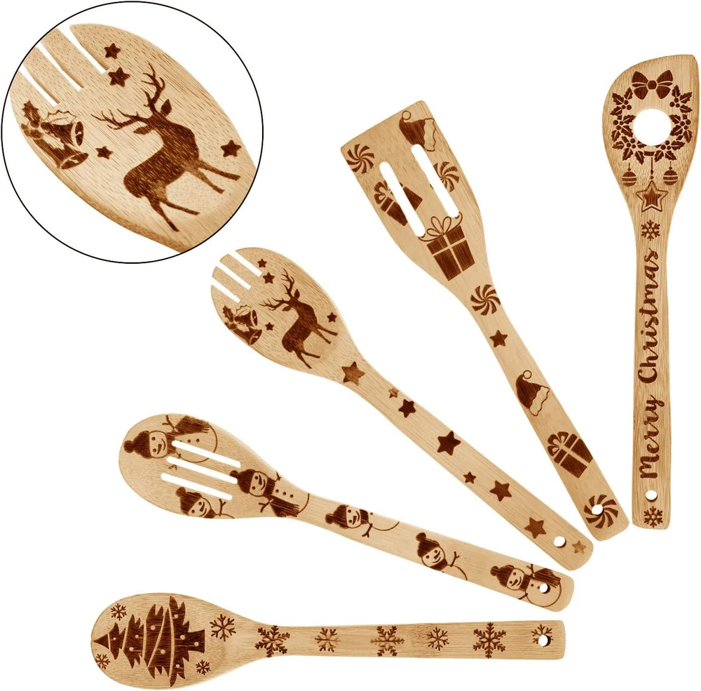 5 Pieces Christmas Wooden Spoons Set Christmas Utensils Burned Christmas Cooking