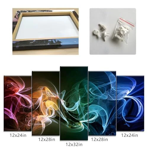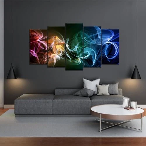 Menu 1. We require immediate payment. 2. We currently accept payment via eBay managed payments only. 3. Once payment is cleared, we will dispatch your shipment within 1-3 business days. Please refer to the "Shipping" tab for more information regarding shipping speed to your destination. 5 Pieces Modern Large Canvas Wall Art Colorful Waves Abstract Smoke Effect Pictures Paintings on Canvas for Living Room Bathroom Bedroom Home Office Decor Product description Size : Multi piece set comes with 5 sizes of canvas prints. 12 x 24 inch x 2 pcs, 12 x 28 inch x 2 pcs, 12 x 32 inch x 1 pcs. Total size of 5 pieces if placed together without spaces is 60 x 32 inch High Definition Canvas Prints : Quality glossy canvas with long lasting durability Printed at high resolution using the latest state of the art color technology ensures sharp & vibrant images every time Ready to Hang : Your framed wall art is carefully packaged in bubble wrap and cardboard to ensure it arrives in perfect condition. Each panel has been stretched on wooden frame with hooks mounted on the back, and we also equipped with seamless nails in the package Widely Used : It is a beautiful decoration for living room, bedroom, dining room, kitchen, bathroom, hallway, guest room, yoga room, office, children's room, cafe, restaurant and hotel. This contemporary painting will brighten up your room Perfect Decorations : This framed canvas art wall decor is a wonderful idea for many occasions such as Christmas, New Year, moving to a new house or housewarming party for your relatives and friends PLEASE MESSAGE US IF YOU HAVE ANY OTHER QUESTIONS, AND MANY THANKS FOR READING ALL OF THIS. Copyright ©#. All Rights Reserved.