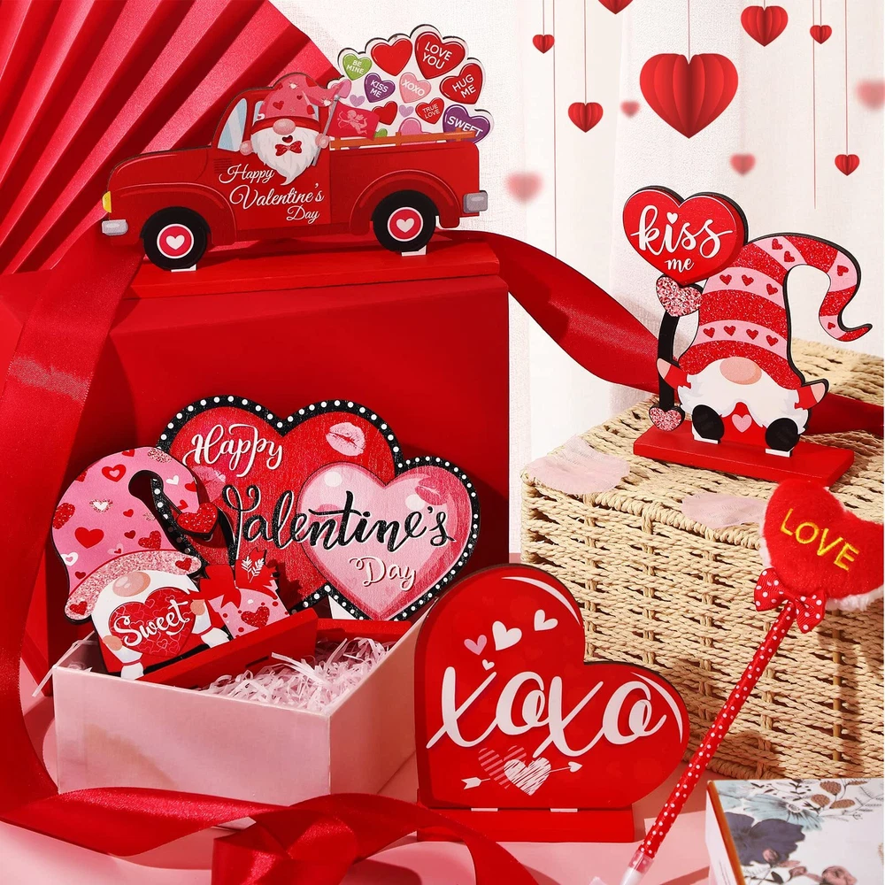 Valentine's Day Table Decoration: you will get 5 pieces of Valentine's Day wooden decorations in 5 delicate styles, sufficient quantity and various styles to meet your different decorative needs, and you can also share with your family and friends Proper Sizes: the highest height of this set of Valentine's Day table decoration is approx. 13 cm/ 5.51 inches, and the longest length at the bottom is approx. 20 cm/ 7.87 inches; The proper size is befitting for decorating your desk, bookcase, counter, shelf and more Using Them in Confidence: these beautiful Valentine's Day table centerpieces are made of quality wood, printed with delicate patterns, not easy to fade, which will enhance the festive atmosphere, and you and your family will love them Wide Range of Applications: these happy Valentine's Day wooden signs are ideal decorations for Valentine's Day table, dining table, gatherings, themed parties and so on, and they can also be applied as souvenirs, which will bring a fun and happy atmosphere to your party and home As an Ideal Gift: the indoor valentines decorations are suitable present choices, and the Valentines related words on the decorations help to express your love; You can send them to your friends or family members, and they will like these charming stuff, feeling your love and care