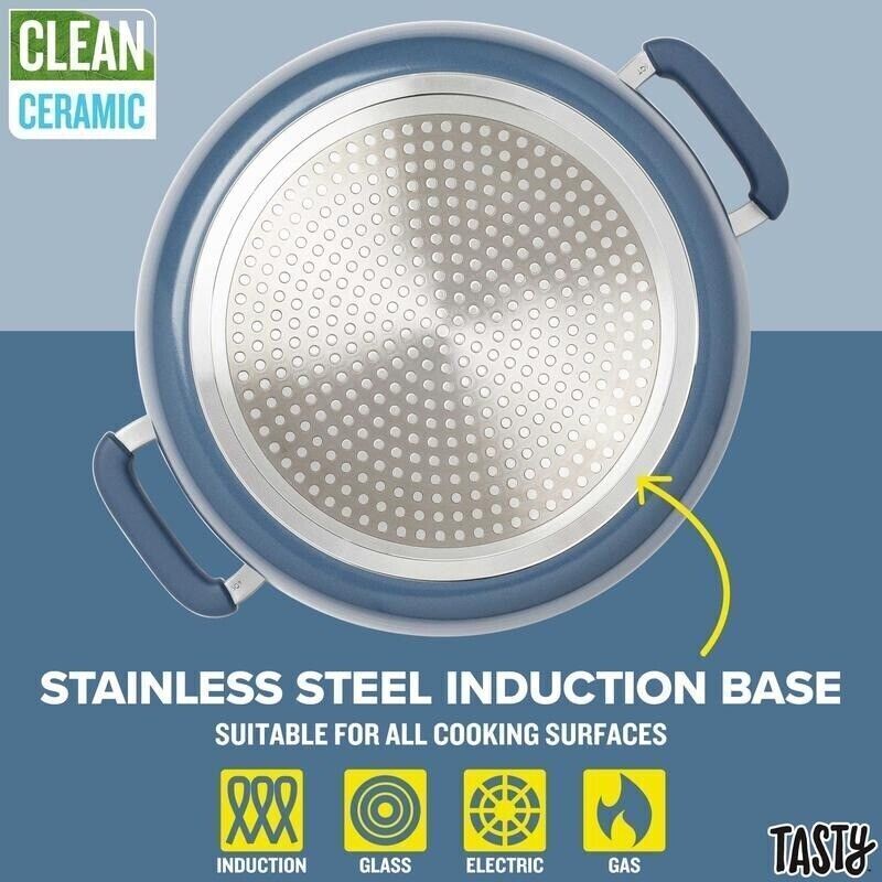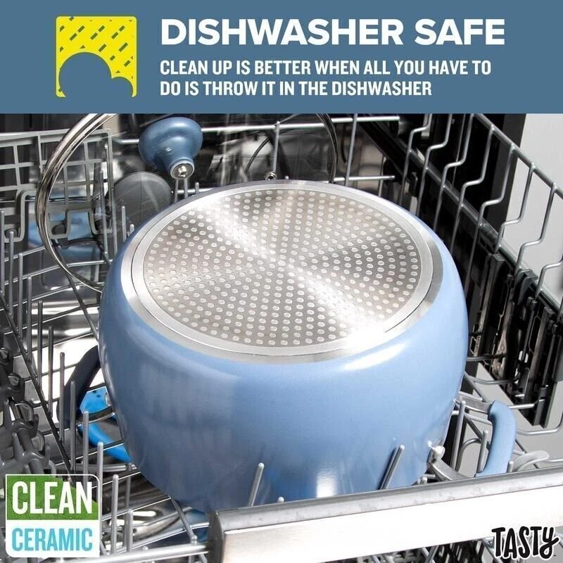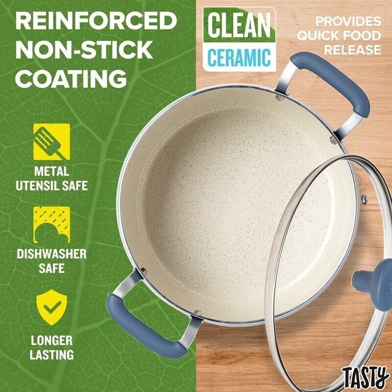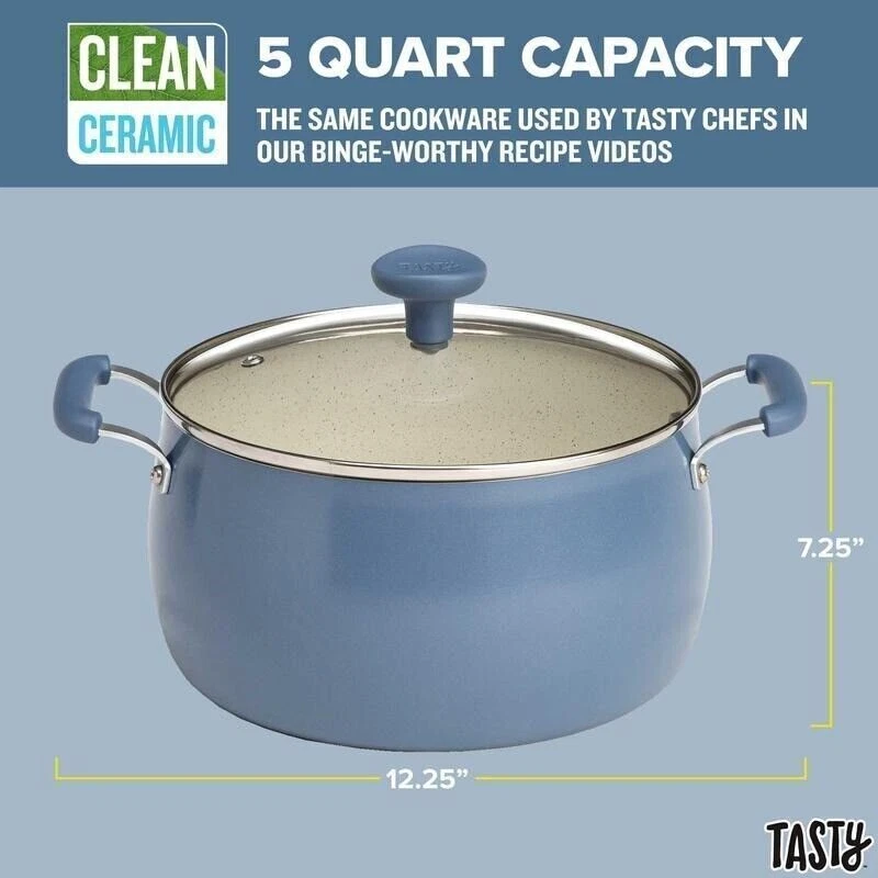 You may also like Nonstick Cast Iron Casserole Pan Durable Bakeware Dual Handles Baking Roasting 53.06 USD 55.85 USD Free shipping 5% off 5 Qt Pre-Seasoned Dutch Oven W/ Spiral Bail Handle Durable Cooking Cast Iron New 36.75 USD 38.68 USD Free shipping 5% off Enameled Cast Iron Dutch Oven 5.5qt Induction Safe Nonreactive Cookware New 58.99 USD 62.09 USD Free shipping 5% off 3 Qt Enameled Dutch Oven Induction Cooktops Broil Bake Kitchen Cast Iron Red New 94.89 USD 99.88 USD Free shipping 5% off Reversible Grill Griddle Cookware Easy Clean Nonstick Cast Iron Searing Cooking 47.39 USD 49.88 USD Free shipping 5% off 60" Camp Tripod Adjustable Galvanized Chain Campfire Picnic Outdoor Cast Iron US 109.89 USD 115.67 USD Free shipping 5% off Pre-Seasoned 7 Quart Round Cast Iron Dutch Oven Kitchen Cooking Pot Cookware New 83.85 USD 88.26 USD Free shipping 5% off Cast Iron Enameled Dutch Oven For Induction Cooktops Easy Clean Red Safe 3 Quart 94.89 USD 99.88 USD Free shipping 5% off Reversible Cast Iron Griddle Pre-Seasoned Cooking Surface Outdoor Camp Kitchen 42.29 USD 44.52 USD Free shipping 5% off Pre-Seasoned 5qt Nonstick Cast Iron Dutch Oven Camping Cookware Spiral Handle US 36.75 USD 38.68 USD Free shipping 5% off 5qt Pre-Seasoned Cast Iron Dutch Oven Nonstick Camping Kitchen Cookware Kitchen 36.75 USD 38.68 USD Free shipping 5% off 17"Dual Handle Pan Seasoned Nonstick Cooking Camping Outdoors Cookware Cast Iron 100.16 USD 105.43 USD Free shipping 5% off Perfect for easy meal prep in a single pot, this Tasty Clean Ceramic 5-quart Dutch oven features a superior non-stick coating. The super slippery, longer-lasting reinforced non-stick coating allows food to easily come out of the pot. Simmer your favorite sauces; the heavy duty construction on this Dutch oven heats quickly and evenly so you can sizzle successfully. The easy to grip handles will provide extra comfort, so you don't drop that precious food that you worked so hard to create. The tempered glass lid has a steam vent to prevent overflowing and the raised grip knob allows you to lift the lid without singeing your digits. Better, Stronger, Longer-Lasting Non-Stick: This Dutch oven features a premium, reinforced Clean Ceramic non-stick coating that allows food to easily slide out of the pot Healthy Cooking: The ceramic non-stick coating is made without PFAS, PFOA, PTFE and PFOS Metal Utensil Safe: The durable non-stick is metal utensil safe, though we still recommend using silicone, wood or nylon tools when cooking Dishwasher Safe for Easy Cleaning: This stock pot is dishwasher safe for fast and easy clean-up Sizzling Quality: Heavy duty construction heats quickly and evenly Suitable for All Cooking Surfaces: Use this pot on induction, electric, gas and glass! Features a stainless steel induction base Includes: 5 quart Dutch oven and steam vented glass lid Features: Nonstick, Induction Compatible Brand: Tasty Material: Aluminum Nonstick: Y Color: Blue Size: 5 Quart Cleaning, Care & Maintenance: Dishwasher Safe Assembled Product Dimensions (L x W x H): 13. 98 x 9. 25 x 5. 51 Inches You may also like 50" TV Stand Open Storage Shelf Organize Entertainment Console Media Table New 85.21 USD 89.7 USD Free shipping 5% off 12 Pc Dinnerware Set Floral Stoneware Bowls Plates Microwave Dishwasher Safe New 56.81 USD 59.8 USD Free shipping 5% off Modern Shoe Cabinet Storage Organizer Entryway Hallway Mudroom 12 Pair Capacity 122.3 USD 128.74 USD Free shipping 5% off Child Golf Set Easy Twist Lock Length Adjustable Portable Driver Iron Putter Kid 35.62 USD 37.49 USD Free shipping 5% off 3 Count 6 QT Covered Stock Pot Saucepan Lock-N-Drain Stainless Steel W/ Strainer 49.59 USD 52.2 USD Free shipping 5% off 50-Pair 10-Tier Metal Shoe Tower Shoe Storage Rack Organizer w/ Wheels Entryway 58.77 USD 61.86 USD Free shipping 5% off Electric Waffle Maker 5 Heart Shaped Waffles Non-Stick Adjustable Temperature US 45.12 USD 47.49 USD Free shipping 5% off Hypoallergenic Down Alternative Striped Pillows King Size Gusset Supportive Soft 60.91 USD 64.12 USD Free shipping 5% off Versatile 50L Laundry Hamper Lightweight Plastic Basket W/ Hinged Lid Handles US 46.3 USD 48.74 USD Free shipping 5% off Geometric Plush Shag Area Rug Machine Made Indoor Carpet Soft High Pile Beige 103.73 USD 109.19 USD Free shipping 5% off Trash Cans Wastebaskets Plastic Step-On Receptacle Large Capacity Durability Lid 65.95 USD 69.42 USD Free shipping 5% off 15 Gallon Durable Industrial Storage Containers Set of 6 Stackable Heavy Duty US 137.92 USD 145.18 USD Free shipping 5% off