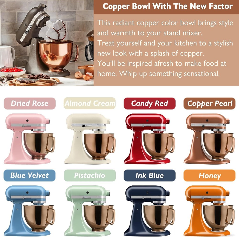 Free eBay listing template designed by dewiso.com 5 Quart Stainless Steel Mixer Bowl for Kitchenaid Classic&Artisan Tilt Head Mixer, Fit for KSM75, KSM90, KSM150, Radiant Copper, 1.75Lb, 0.8MM Thick, Heavy Duty, Dishwasher Safe, Ergonomics Handle FREE AND FAST SHIPPING! About this item ⭐【Perfect for Kitchen Aid】This colored mixing bowl compatible with Kitchen Aid Classic and Artisan Series stand mixer(not fits Artisan Mini Series). You can choose it for most of 4.5 to 5 quart stand mixer like K45SS, KSM75, KSM85, KSM90, KSM100, KSM150, KSM160. ⭐【Advanced PVD Process】 Elevate your kitchen's aesthetic with our cutting-edge PVD Vacuum Plating. This industrial-grade coating reduces visible fingerprints and water spots by up to 80%, ensuring your bowl maintains a flawless, mirror-like luster even during the messiest baking sessions. ⭐【Heavy Duty and Stability】Precision-engineered at a heavy duty 1.75 pound with an industry-leading thickened design. The extra mass and thickness provide exceptional stability, effectively dampening vibrations and keeping your mixer rock-steady while kneading heavy dough or mixing high-density ingredients. ⭐【Luxury Polished Copper Surface】Transform your stand mixer into a sophisticated kitchen centerpiece. The brilliant, polished copper-tone finish exudes timeless elegance, adding a high-end "designer" touch to your countertop that perfectly complements both modern and classic home decors. ⭐【Always Dishwasher Safe】unlike ordinary electroplated bowls, our PVD finish has passed a rigorous 400-hour dishwasher durability test. The vibrant copper color is bonded at a molecular level, ensuring it will not peel, chip, or fade over time, providing you with hassle-free maintenance. ⭐【Premium Food-Grade Material】 Crafted from high-quality, food-safe stainless steel, the interior is 100% non-reactive and resistant to rust, odors, and corrosion. It provides the exquisite look of copper on the outside with the uncompromising safety and hygiene of professional steel on the inside. ⭐【Wiselet Care】Wiselet will escort you through your baking experience. We offer every customer fast replacement. We'll solve all your problems quickly, properly and thoughtfully, making your every choice a wise one! Product We offer a 30-Day Return Policy on items which you are not completely satisfied with. You have the option for a full-refund or an exchange of the item. No returns are available on items shipped outside of the US . Shipping We offer Free Shipping to the US and ship within 2 business days of payment, usually sooner. We use UPS express shipping. That's why your products are usually delivered within 3 days . Contact We try our very best to make sure every customer is completely satisfied. If there's a problem , message us! We're happy to help. 24/7 live chat available.
