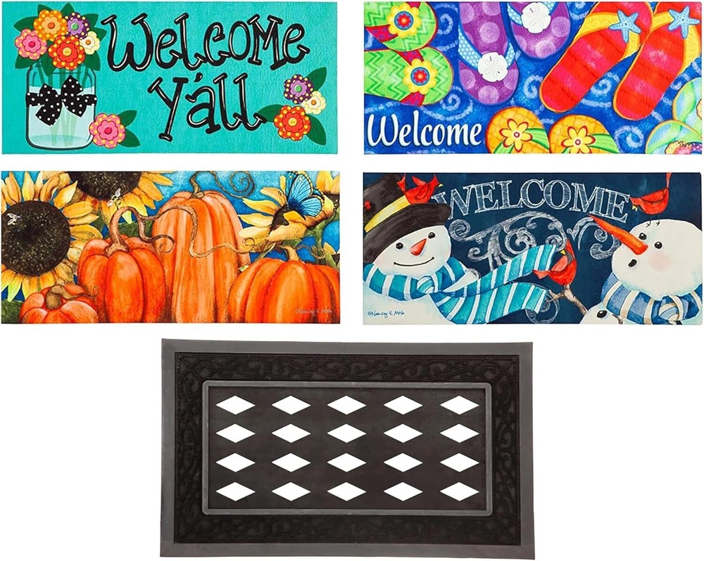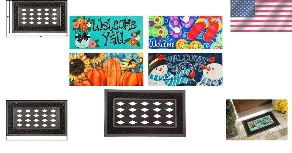 5 Seasonal Interchangeable Doormats with 28x16 Rubber Tray – Elegant Décor ‹ › ‹ › ‹ › ‹ › ‹ › ‹ › ‹ › ‹ › ‹ › ‹ › ‹ › ‹ › Elegant Seasonal Interchangeable Doormats 5 Seasonal Interchangeable Doormats with 28"x16" Rubber Tray Overview: Transform your entryway with this exquisite bundle of Sassafras mats, perfect for year-round decor. Effortlessly switch up your seasonal style and enhance the welcoming atmosphere of your home. Each doormat measures 22" x 10" and fits seamlessly within our robust 28" x 16" rubber tray. Features: High-quality polyester top surface, weather, fade, and stain-resistant. Heat-sublimated artwork that endures high foot traffic without fading or rubbing off. Durable anti-skid rubber backing keeps the mat securely in place. Convenient low profile for easy cleaning and quick drying. Each mat measures approximately 22" x 10", fitting perfectly into the tray. Benefits: Easy to switch designs for every season, allowing for unique home personalization. Designed to capture dirt and debris, enhancing cleanliness at your entrance. Lightweight and simple to clean – just shake, broom, or hose down. Ideal housewarming gift for new neighbors, friends, or anyone who loves home decor. Trusted quality, backed by over 25 years of craftsmanship. Why Choose Our Sassafras Mats? Welcome guests with style and sophistication using our luxurious Sassafras Switch Mats! Their elegant design combined with practicality makes them a perfect fit for any home. Revel in the ease of refreshing your entryway every season, while enjoying the durability and quality of our mats, which have been crafted with care since our inception in Richmond, VA. This ensemble is not just a doormat—it's a statement piece that represents your unique taste and flair. Treat yourself or delight someone special with the ultimate gift of home décor expression. Discover the art of seasonal transition—order your Elegant Seasonal Interchangeable Doormat set today! Shipping Free & Fast Shipping - We offer free shipping to most of the USA with a normal delivery time of 3-7 days. However, due to the current situation, additional delivery time (up to 3 weeks) may be required for some items. Alternative Carriers - We may use alternative carriers (e.g. USPS, FedEx, UPS, etc.) to ensure your package arrives safely and on time. Due to the use of multiple carriers, we are unable to provide a tracking number automatically. Handling Time - Orders are processed and shipped within 1-2 business days of receiving cleared payment. Shipping Restrictions - Shipping to Alaska, Hawaii, Puerto Rico, Guam, and other US territories may incur shipping charges or delivery restrictions. Please contact us before ordering, or your order can be refunded/cancelled. State Restrictions - There may be restrictions based on your state of purchase. For example, certain items may not be shipped to California due to state regulations. Contact for Tracking Updates - If you require tracking updates or have any concerns about the delivery of your order, please feel free to contact us, and we will be happy to assist you. Return 30-Day Hassle-Free Returns - We want you to be completely satisfied with your purchase. If you are not, you can return the item within 30 days of receiving it for a full refund or exchange. Easy Return Process - To start a return, simply contact us and we will provide you with a prepaid return shipping label and detailed instructions. Restocking Fee - There are no restocking fees for returns. However, the buyer is responsible for return shipping costs if the return is not due to a seller's error. Refund Processing Time - Refunds will be processed within 5 business days of receiving the returned item in its original condition. Payment We accept all major credit cards, PayPal, and Apple Pay for your convenience. Your payment information is secure and encrypted to ensure a safe and seamless transaction. Please complete your payment within 3 days of purchase to avoid any delays in shipping. Feedback Your feedback is extremely important to us. We strive to provide the best products and customer service possible. If you are satisfied with your purchase, please take a moment to leave us a positive review. If you have any concerns or issues with your order, please contact us before leaving negative feedback. We are committed to resolving any problems and ensuring your satisfaction. Contact Us If you have any questions or concerns, please feel free to reach out to our customer support team. You can contact us through the eBay messaging system. We are available Monday to Friday, 9:00 am to 5:00 pm EST, and we will do our best to respond to your inquiry within 24 hours. Buy it now and enjoy a pleasant shopping experience! UPC: Not Set Unit Quantity: 5 Room: Any Room,Hallway,Indoor,Outdoor Material: Rubber,Polyester Features: Easy to Clean,Non-Slip,Stain Resistant Department: Kids,Teens,Adults Theme: Summer,winter Brand: Unbranded Type: Doormat Color: Multicolor Pattern: Multi Shape: Rectangle Item Width: Not Set Item Length: Not Set MPN: Not Set Model: Not Set Size: 22 in x 10 in Style: Modern Pile Height: Low Pile Regional Design: Not Set Country/Region of Manufacture: Not Set Pile Type: Low Pile Weave: Machine-Woven Era: 21st Century (2000-Now) Unit Type: lb Personalize: Not Set Personalized: Not Set