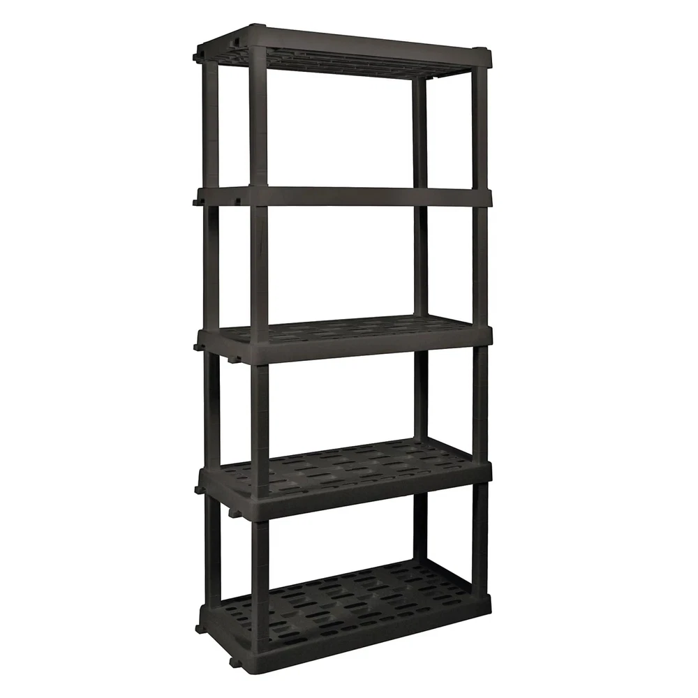 5 Shelf Plastic Garage Shelves Adjustable Storage Shelving Unit Black 750lb Rack