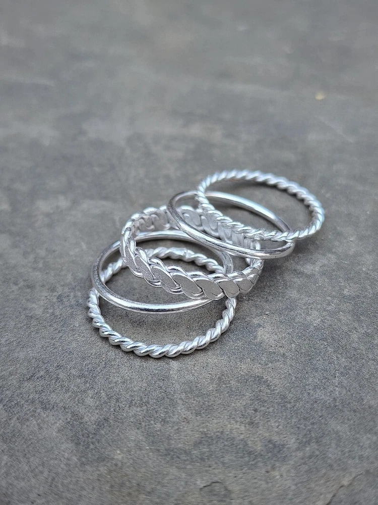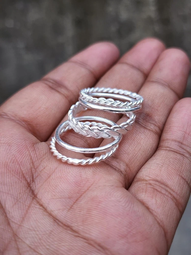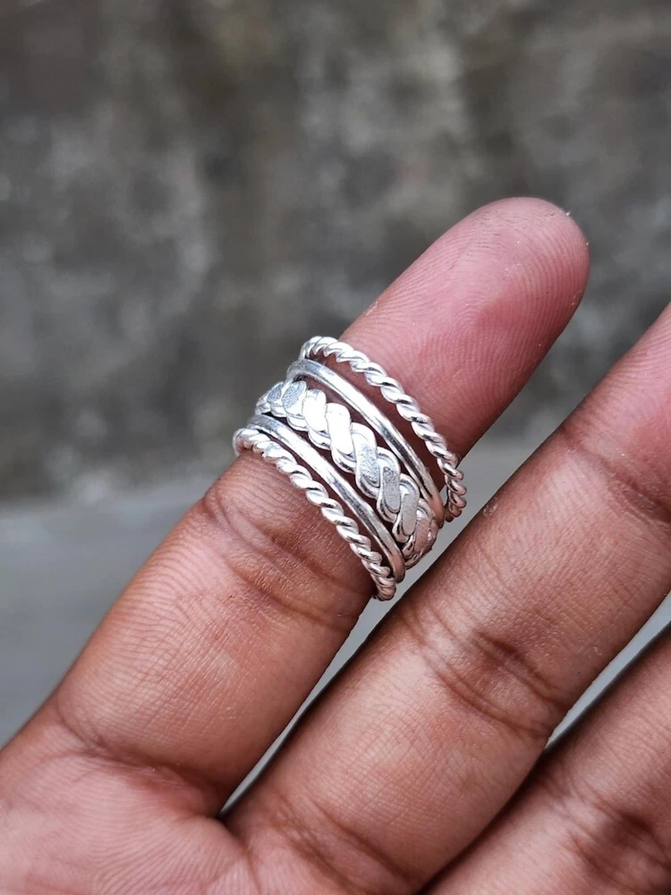 Welcome To My Shop Set of 5 Sterling Silver Stacking Rings, Thick & Thin Silver Ring, Minimalist Rings, Twisted Silver Ring, Women Stacking Ring, Ring Set All my Designs are original. Size - All Size Ring This Ring is for Women You will receive a Ring like the one in the pictures This Ring have 925 Stamp Suitable for use in everyday situations, or can also be used as a gift. Unique design will make a special attraction for the wearer. I make my jewelry with passion and love. The perfect gift for a Special occasion Wholesale Orders Accept on Wholesale Price All Pieces Have 925 Stamp