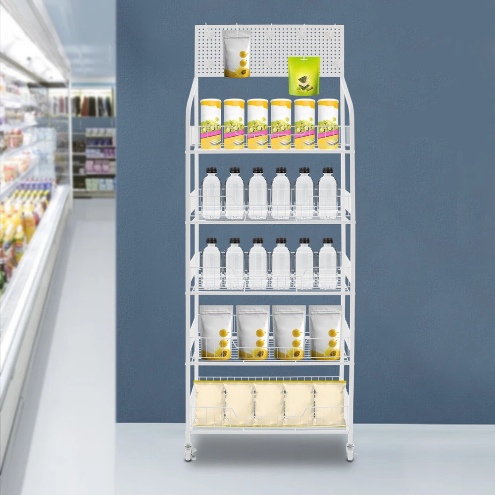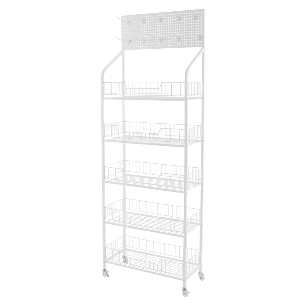 Specifications Material: Iron Process: Baking Paint Style: Modern Color: White Shape: Rectangular Mount Type: Free Standing Assembly Required: Yes Number of Tiers: 5 Number of Wheels: 4 (2 with Brakes) Each Tier Load-bearing Capacity: 20kg/44.09 lbs Each Hook Load-bearing Capacity: 1kg/ 2.2 lbs Tier Spacing: 29 cm/11.42 in Top Hole Hanging Plate Height: 23cm/9.06 in Product Size: 60*27*170 cm/23.62*10.63*66.93 in Package Size: 146*28.5*7.9 cm/57.48*11.22*3.11in Gross Weight: 9 kg/ 19.84lbs Net Weight: 8.55 kg/18.85 lbs Package Included 1* Retail Display Stand 10* Hooks 4* Universal Wheels All Accessories for Assembly 5 Tier Retail Display Cases Movable Snack Candy Display Shelf Snack Rack w/Hooks Specifications Material: Iron Process: Baking Paint Style: Modern Color: White Shape: Rectangular Mount Type: Free Standing Assembly Required: Yes Number of Tiers: 5 Number of Wheels: 4 (2 with Brakes) Each Tier Load-bearing Capacity: 20kg/44.09 lbs Each Hook Load-bearing Capacity: 1kg/ 2.2 lbs Tier Spacing: 29 cm/11.42 in Top Hole Hanging Plate Height: 23cm/9.06 in Product Size: 60*27*170 cm/23.62*10.63*66.93 in Package Size: 146*28.5*7.9 cm/57.48*11.22*3.11in Gross Weight: 9 kg/ 19.84lbs Net Weight: 8.55 kg/18.85 lbs Package Included 1* Retail Display Stand 10* Hooks 4* Universal Wheels All Accessories for Assembly Description In the retail industry, a good display can make goods stand out and attract customers' attention. Take a look at our well-designed retail display stand. It is not only rugged but also stylish. The multi-tier storage structure can meet your diverse display needs, and the hole-hanging plate at the top is a highlight. With its reasonable structural design, premium material, multi-functional applications, and convenient use experience, it has become an ideal choice for your store display. Key Features Build to Last : It is mainly made of high-class iron, with a baking paint process, which is impact-resistant, scratch-resistant, and not easy to deform, so it can be used for a long time. Stylish Appearance: The classic color scheme and smooth lines make it easy to blend into a variety of shop environments and can be paired well with most decorative styles to become a beautiful landscape. Excellent Load-bearing Capacity: The thick material, rectangular frame, and sturdy screw fixation allow each tier to hold up to 44.09 lbs and each hook to hold up to 2.2 lbs, thus providing greater stability for your supplies. Storage Assistant: The product has a total of 5 tiers, giving you enough space to put your toys, snacks, drinks, and other items, and the top of the hole hanging plate and 10 hooks also increase your storage space, which can be used to hang key chains, necklaces, bracelets, and other small ornaments. User-friendly: The spacing (tier spacing: 11.42 in) between each shelf is moderate, ensuring that the goods are neatly placed and easy for customers to browse. In addition, the hooks are removable, you can adjust the position of the hooks according to the type of goods and display needs, providing great flexibility. Space-saving: Adopting a vertical structure, this product occupies very little space (23.62*10.63 in ), which is very practical and space-saving. Easy to Move&Fix: Equipped with 4 universal wheels (2 with brakes) and handles, this product can be moved from one room to another smoothly and easily, or fixed stably in the corner. Thoughtful Design: Featuring an open wire frame design, it can effectively drain water, promote air circulation, keep your items dry, and provide convenience for you. Convenient to Assemble : The pre-drilled holes, simple structure, and complete accessories allow you to complete the assembly and start using it in a short period. Exquisite Gift : This functional and aesthetically pleasing product is an ideal gift for Christmas, birthdays, or housewarming for your friends, family, and colleagues. Simple Cleaning: With its open construction and smooth surface, you can simply wipe off surface dust with a damp rag (not included). Buy with Confidence: We stand behind all our guests and look forward to assisting you with your purchase. It is our pleasure to answer your confusion and questions. The end of the story between us is not "we sell and you buy". Details Elevated Guardrails: They allow you to better showcase your products vertically and also prevent your display items from falling off. Practical Handles: The two carrying handles on the top make it easy for you to carry the whole product. Raised Bottom: This design prevents your items from directly touching the floor and also makes it easy to sweep the floor. Smooth Edges : The smooth and round edges make it safer for you to assemble, use, and clean the product. Application It is suitable for grocery stores, supermarkets, bakeries, snack shops, movie theaters, hotels, convenience stores, cosmetics stores, stationery stores, jewelry stores, kitchens, bedrooms, laundry rooms, game rooms, offices, dormitories, and other places. It can be used to store and display fruits, drinks, vegetables, towels, toys, snacks, craft supplies, cookies, condiments, and other items. Notes Please check the size carefully before ordering. This product does not include other items. Please use within the load-bearing range of the product. Please allow the slight color difference caused by the shooting light and 1-3cm error due to manual measurement, and make sure you do not mind before you order. Payment Delivery details Terms of sales About us Contact us Payment We accept ebay payment 。 Fees such as import duties, taxes are not included in the item price or shipping costs. These charges are the buyer's responsibility. Delivery details Shipping: 2-9 working days to: USA Terms of sales We maintain high standards of excellence and strive for hundred percent customer satisfaction. Feedback is very important to us. We hope that you contact us immediately before you give neutral or negative feedback, so that we can ad