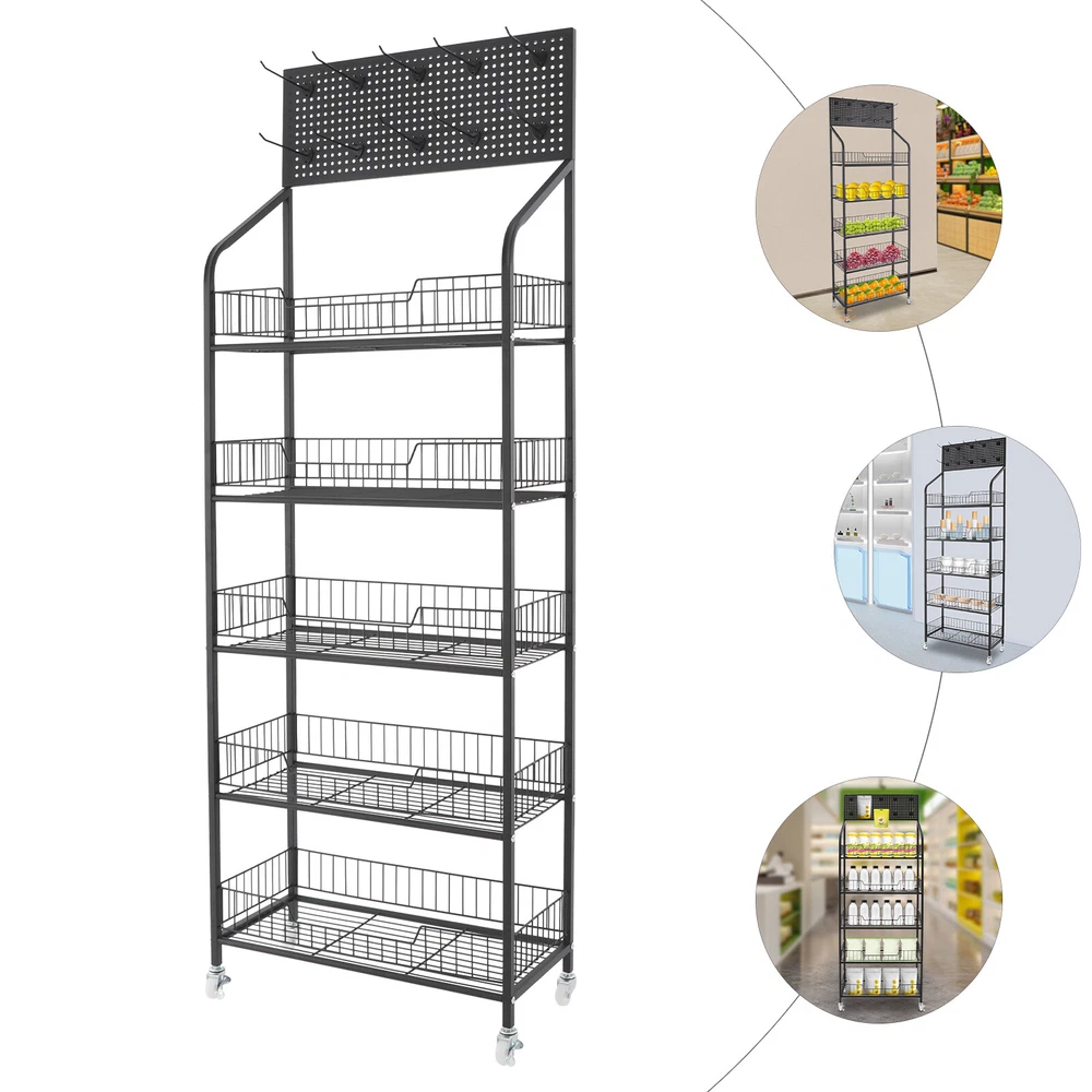 5 Tier Retail Display Rack, Snack Display Organizer, Snack Rack Stand With Hooks