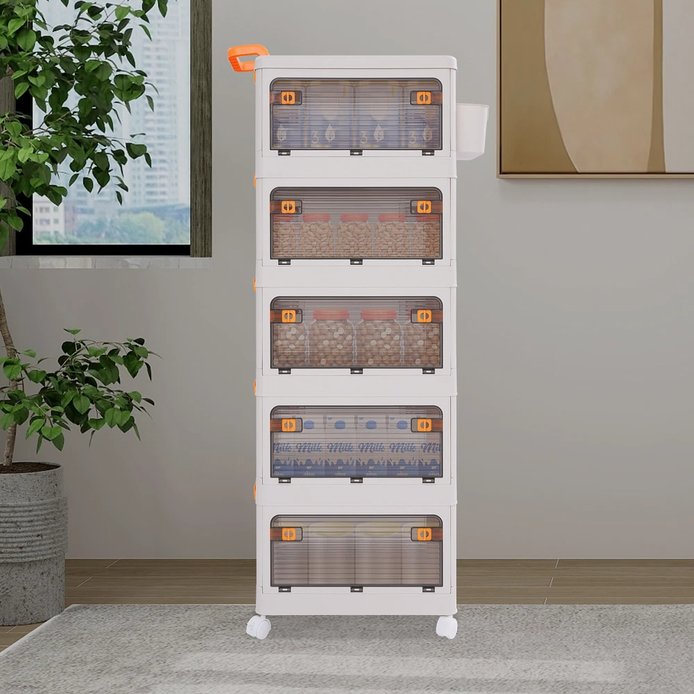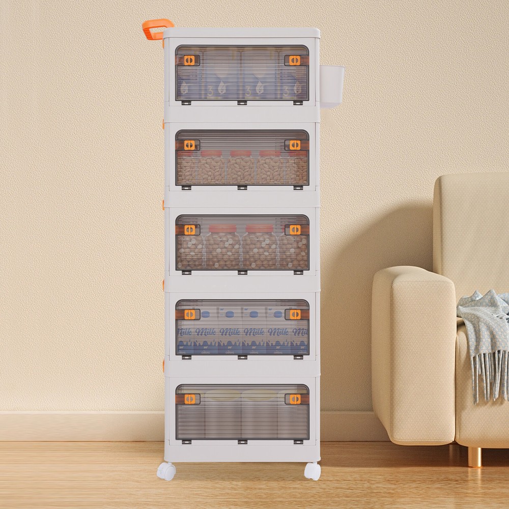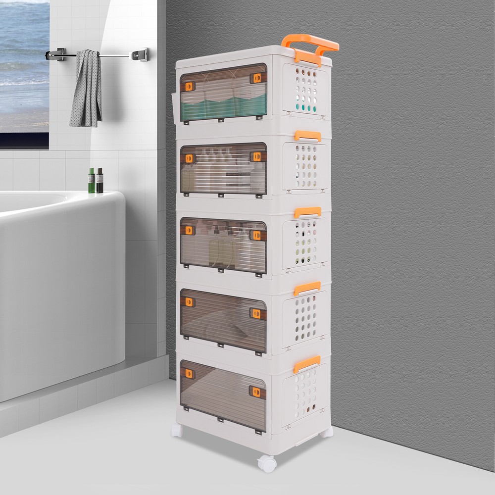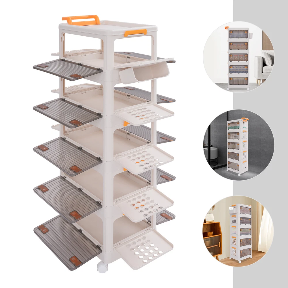 5 Tier Storage Bin Box Stackable Cabinet Organizer W/ Doors And Wheels NEW Description To say goodbye to the dirty room and create a clean and high-value room, we designed this 5-tier storage bin for you. This 5-tier storage can effectively improve space utilization. It can be used to store clothes, children's toys, pet supplies, kitchen condiments, bathroom supplies, etc., which is economical and affordable, so buy and try it! Key Features Selected Material : High-class PP makes this product hard, environmentally friendly, odorless, dustproof, waterproof, and not easy to deform so that it can be used for a long time. Ample Storage Capacity : The 5-tier design provides plenty of space to organize and store a variety of items, such as clothing or household essentials, to keep your home tidy. The side basket can also hold keys and other small items, and the top platform can hold mugs, table lamps, vases, and more. It also helps children develop good organizing and storage habits from a young age. Thoughtful Design: The semi-clear door allows you to view the contents without opening the door, and the ventilation holes on the side effectively prevent odors and keep the interior fresh and dry. Easy to Access: The four-side door opening design and removable top allow you to access items from different angles. Strong Load-Bearing Capacity: The rectangular structure and sturdy material allow each tier to hold about 88.18 lbs, so you can use it with confidence. Space Saving : Its multi-tier design uses vertical space, making it easy to create storage space in just a small corner. Moreover, it can be folded into a smaller size when not in use, allowing for efficient storage and saving valuable space in your home or garage. Easy to Move&Fix: The top handle and 4 universal wheels (two with brakes) make this product easy to push and pull, move, and fix, which is very energy-saving. Simple Installation : Simple construction and complete accessories allow you to assemble it in a short time, saving time and effort. Nice Gift : Thanks to its large capacity and beautiful appearance, you can give this product as a housewarming gift or holiday gift to your family, colleagues, or friends so that they can enjoy a more convenient life. Simple Maintenance : Thanks to its smooth surface and simple construction, you can easily clean it with a soft cloth (not included). Details Smooth Edges : The smooth and burr-free edges not only take better care of your hands and clothes but also improve the aesthetics of the product. Raised Guardrail: The raised top design prevents items from falling. Buckle Design : The side buckle design ensures a secure connection between tiers, making it hard to detach. Application This product is suitable for a variety of environments such as bedrooms, study rooms, toy rooms, and offices. It's ideal for organizing clothing, toys, books, craft supplies, office supplies, snacks, and other items. Specifications Material: PP Color: White Style: Modern Shape: Rectangle Mounting Type: Floor Standing Assembly Required: Yes Each Tier Load Capacity: About 40kg/88.18lbs Number of Tiers: 5 Number of Universal Wheels: 4(Two With Brakes) Product Size: 52*31.5*134cm/20.47*12.4*52.76in Package Size: 46*32*45cm/18.11*12.6*17.72in Gross Weight: 7.5kg/16.53lbs Net Weight: 6.7kg/14.77lbs Package Included 1* 5-tier Storage Bin 1* Small Storage Basket 4* Universal Wheels Notes Please carefully check the dimensions before purchasing. Please use this product within the load-bearing range. Please note that this product does not contain clothes, toys, snacks, and other items. Please allow the slight color difference caused by the shooting light and 1-3 cm error due to manual measurement, and make sure you do not mind before ordering. Payment Delivery details Terms of sales About us Contact us Payment We accept ebay payment 。 Fees such as import duties, taxes are not included in the item price or shipping costs. These charges are the buyer's responsibility. Delivery details Shipping: 2-9 working days to: USA Terms of sales We maintain high standards of excellence and strive for hundred percent customer satisfaction. Feedback is very important to us. We hope that you contact us immediately before you give neutral or negative feedback, so that we can address your concerns. It is impossible to address issues if we do not know about them! About us Your satis faction is our ultimate goal. We work hard to earn your trust and future business. Our certified technicians have tested each item before shipping. The unit comes with 1 year limited warranty on all manufacturing defects. a) If you receive a defective item, you may return it or ask for a discount. Please contact us within 14 days after you receive the package. b) What you returned must be intact and in its original packaging as re? u. Customer is responsible for shipping costs of the returned item. c) We will cover the cost of shipping back t with the shipping rate indicated in the registration page. We will send you a new unit or refund the full payment you paid. Thank you. Contact us Business Hour Business Hour: Monday To Friday: 8:30 AM to 5:00 PM (Beijing China time) Due to time zones, our reply to your questions may not be immediately. But within above working time, we will reply your email within 24 hours. If it's non-workdays, please kindly be patient and wait till Monday. Please contact us with ebay message. Please feel free to contact us if you have any questions. Monday To Friday: 8:30 AM to 5:00 PM (Beijing China time) Due to time zones, our reply to your questions may not be immediately. But within above working time, we will reply your email within 24 hours. If it's non-workdays, please kindly be patient and wait till Monday. Please contact us with ebay message. Please feel free to contact us if you have any questions. Feature3 Stable characteristic,high reliability Feature! Stable performance, durable Brand Unbranded Type Storage Basket Material PP