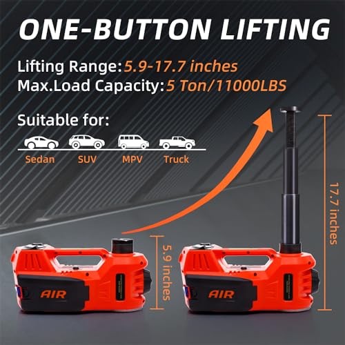 5 Ton Electric Car Jack Kit with Impact Wrench & Tire Inflator for SUV, Truck 5 Ton Electric Car Jack Kit with Impact Wrench & Tire Inflator for SUV, Truck Powerful Lifting: With dual motors, this 5 ton 12V electric jack can lift up to 10,000 lbs, with a height range of 5.9 to 17.7 inches in 1 minute. Non-slip cross-groove design and adjustable height for stable lifting. Quick Tire Inflation: This floor jack includes a built-in air pump for fast inflation and emergency flat tires. Side storage holds inflatable hoses and needles. Real-time tire pressure display for accurate pumping - no more roadside worries. High-Torque Impact Wrench: This electric jack features a 350N.M wrench with dual sockets. A powerful motor enables quick lug nut removal and 360° rotation. Safe & Reliable: Featuring a self-locking structure and durable painted steel body, this lift jack ensures stability and long-lasting rust resistance. Automatically stops at height limit - ideal for roadside emergencies and home repair. Complete Car Jack Kit: Including electric car jack; automotive electric impact wrench; safety hammer; plastic case; 3.5m power cable; power clamp with wire; pair of gloves; user manual, air nozzles etc. Very portable and easy to use. Top Seller | Fast, Reliable Shipping | Always Free | 1-Day Processing | Customer Support You Can Trust Questions? We?re Happy to Help We?re committed to giving you a five-star experience from start to finish. Whether you?re just browsing or have already made a purchase, we?re available to answer your questions quickly and clearly. All communication is handled through eBay?s messaging platform. We take pride in providing fast, honest replies?usually within 24 hours, if not sooner. Buy with Confidence Each item is carefully inspected before it ships to make sure you receive exactly what you ordered, in the best possible condition. And if you?re not 100% satisfied, we?ll do everything we can to make it right . We don?t waste time?your order ships within 1 business day of receiving payment, and we use trusted shipping services like USPS and UPS to ensure it gets to you fast. We never charge for shipping ?it?s always free . ? Due to lighting and screen differences, the actual color may differ slightly from what you see online. Thanks for understanding! Actus_Corp