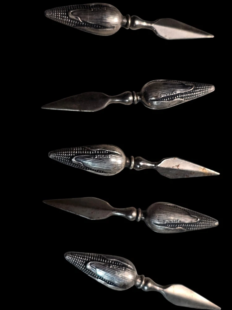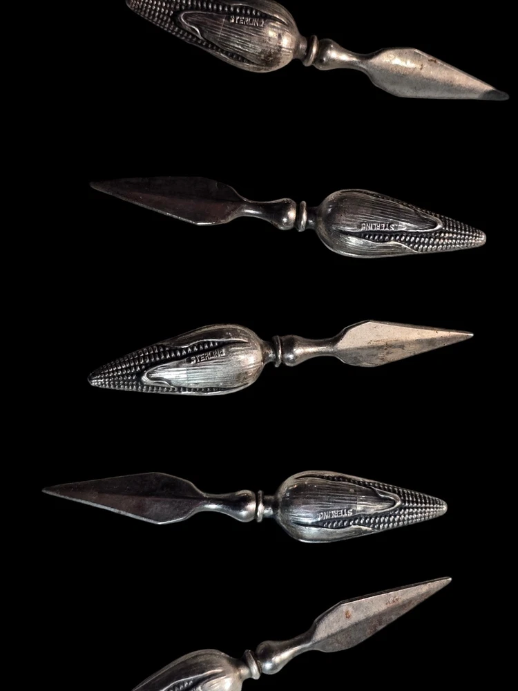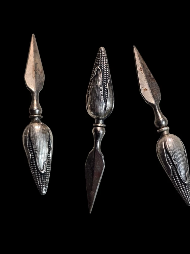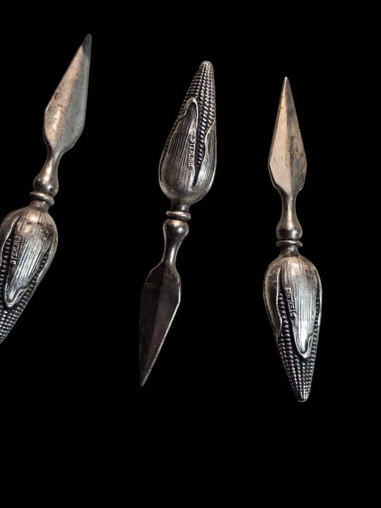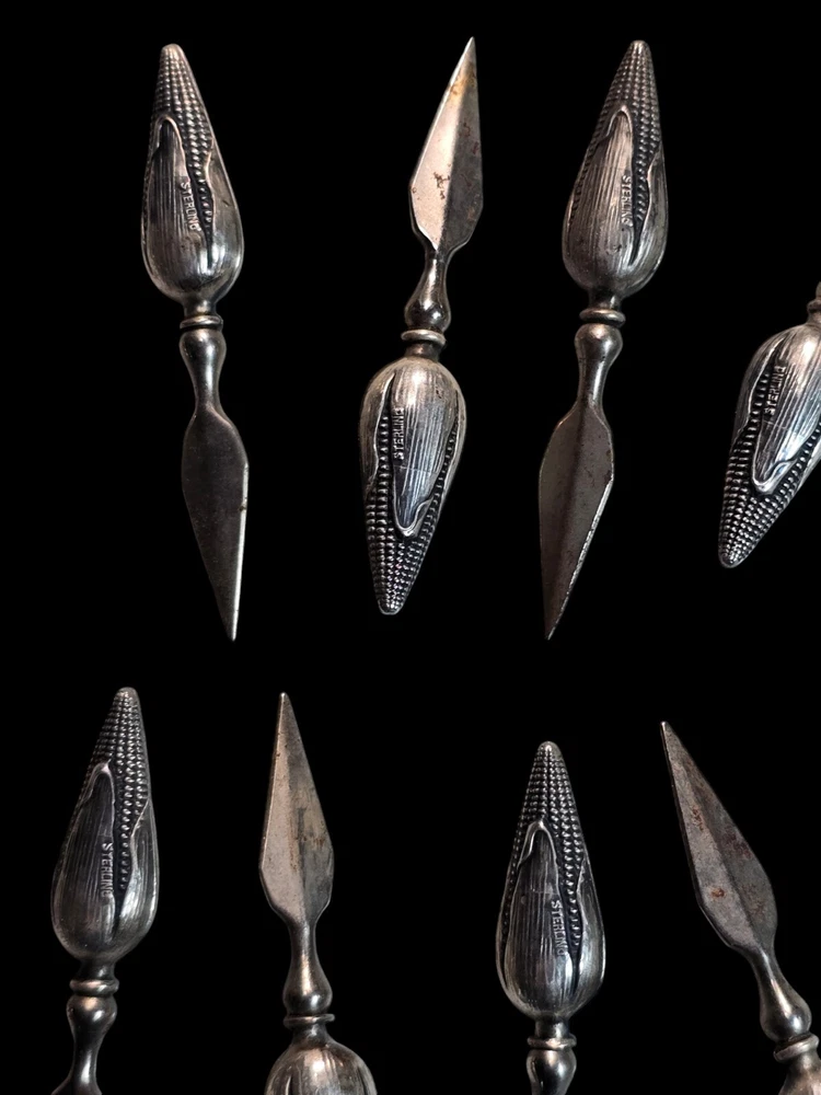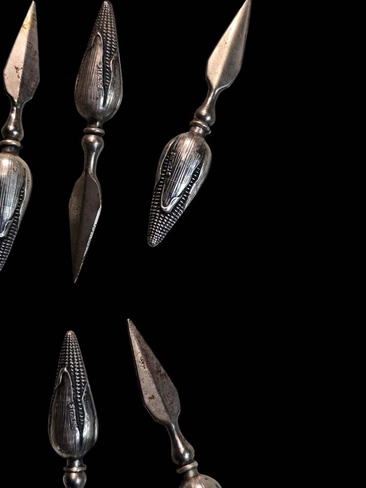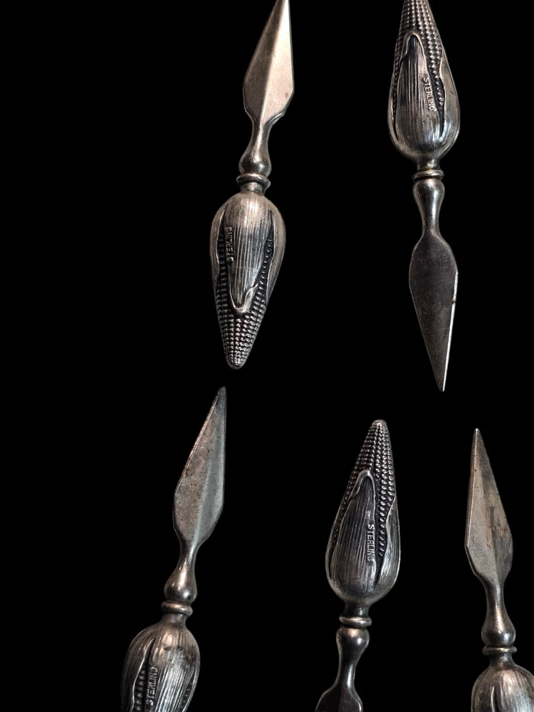 This vintage sterling silver figural corn holder is a beautiful addition to any collection. Crafted by the renowned brand Tiffany & Co., this spoon is made of high-quality sterling silver composition. Its unique design makes it a perfect conversation piece for any antique lover. Whether you're looking to add to your collection or simply want to own a piece of history, this antique corn holder is sure to impress.