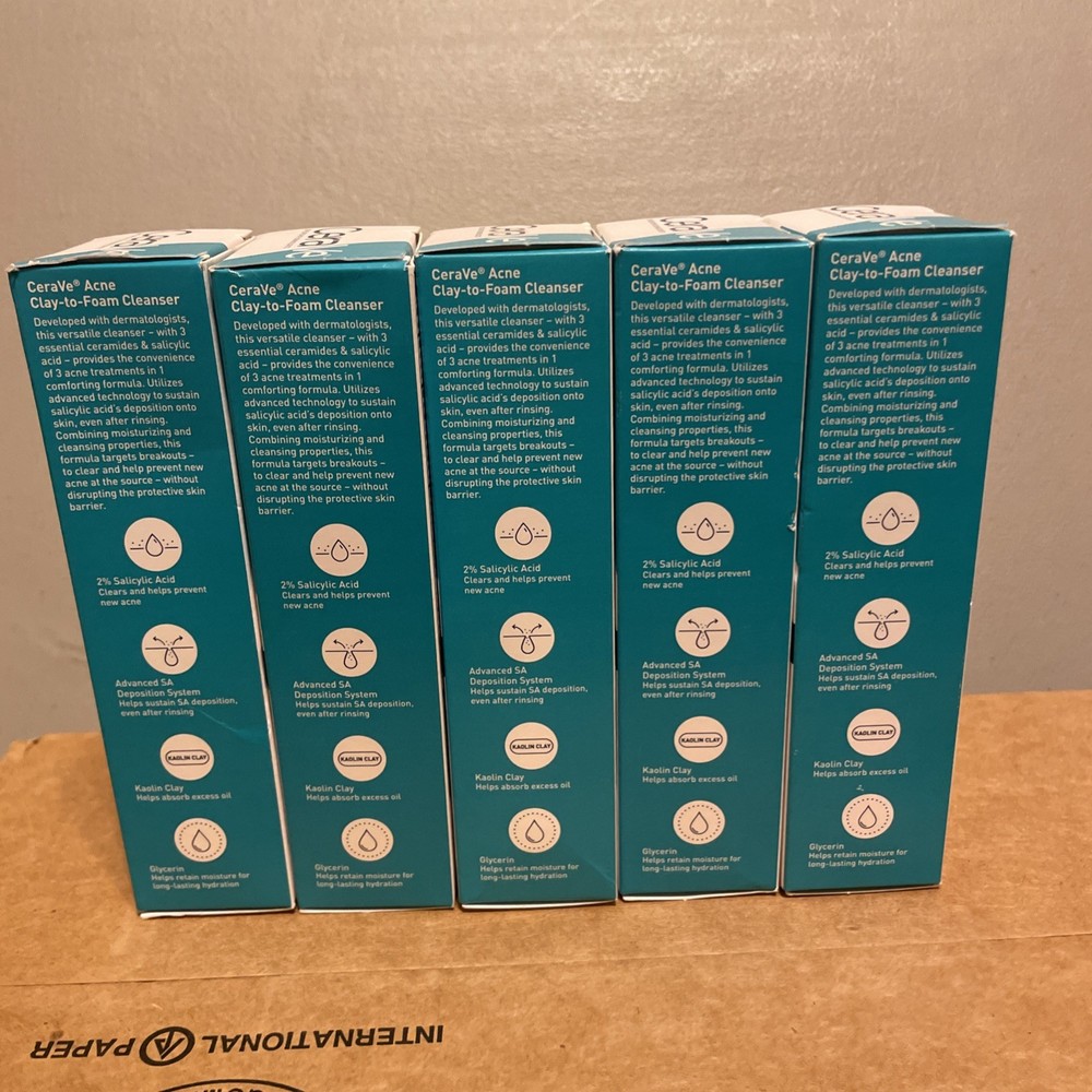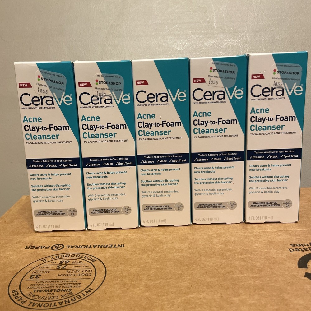 5 boxes- CeraVe Acne Clay-to-Foam Cleanser for Acne-Prone Skin - BB: 04/27 -CeraVe brand - 5 pack - 4 Fl. oz. - new and sealed - Acne Clay to Foam Cleanser - best offers are welcome just be mindful. You are getting free shipping