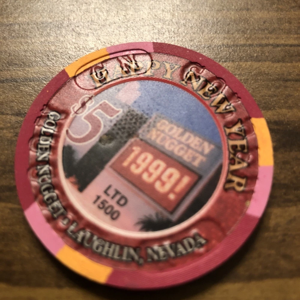 $5 golden nugget new years 1999 obsolete laughlin casino chip
