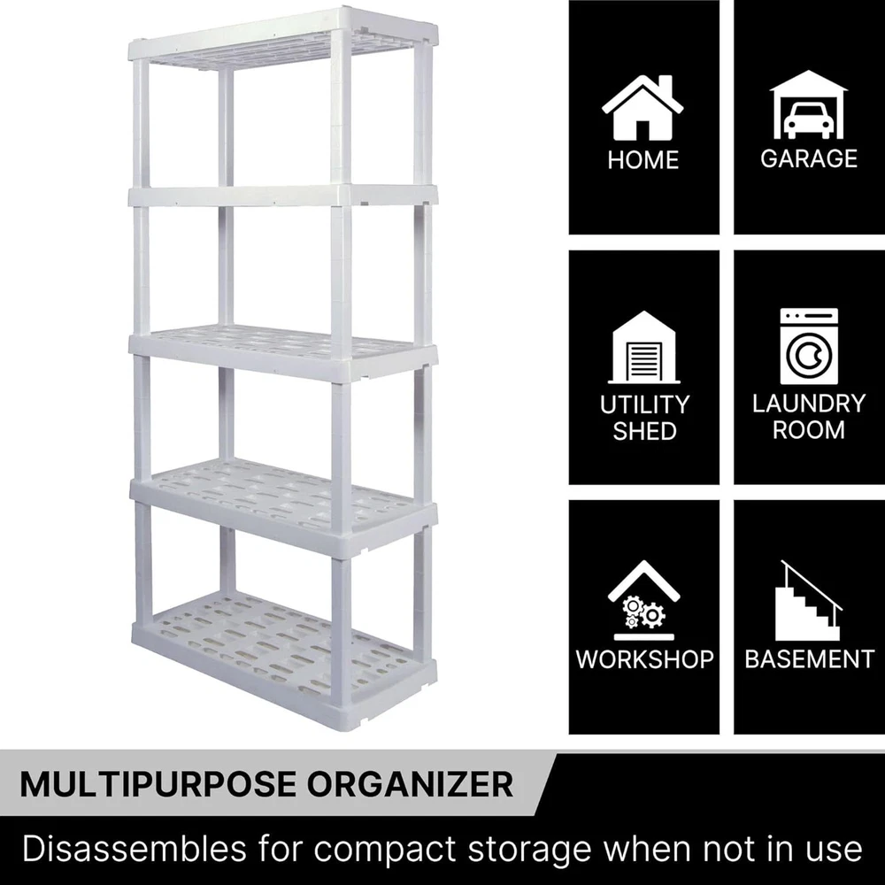 Product Description Organize your life with Oskar interlocking storage shelves Adding shelving is one of the simplest ways to organize even the most limited spaces, protect your items from damp floors, and more. Maximize your storage space with this versatile shelving unit featuring five H 16 x W 36 x D 18 shelves. This lightweight unit snaps together with no tools required and can be assembled and moved by just one person so you can get started on your home organization project right away. Heavy-duty molded plastic resin will not rust, dent, stain, or peel and ventilation holes in the shelves allow air to flow freely around your items for low-maintenance long-term storage. The interlocking design lets you easily and securely link together multiple units and nested legs and anchor holes offer added support for your peace of mind. Whether you are reorganizing your workshop, decluttering the basement, or spring cleaning the garage, Oskar has the perfect shelving solution for you NO TOOLS REQUIRED Ultra-lightweight with easy to assemble snap-together pieces, this sturdy multi-purpose organizer can be put together and moved by just one person. MODULAR STORAGE Interlocking design lets you securely link together multiple shelf units to expand your workshop or basement storage. DESIGNED FOR SAFETY Made of durable molded plastic resin that will not not rust, stain, or peel, with anchor holes and nested legs for added stability. MAXIMIZE YOUR SPACE 16" tall shelves and a compact 36 x 18" footprint help you make the most of tight spaces in your pantry, laundry room, closet, bathroom, and more. usa On Oct 14, 2024 at 02:59:46 PDT, seller added the following information: On Nov 22, 2024 at 00:31:49 PST, seller added the following information: