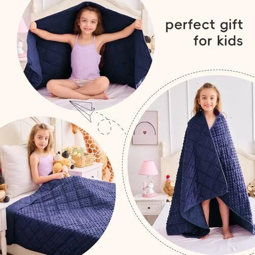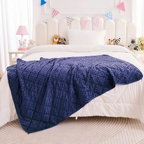 This weighted blanket is amazing for kids! The soft minky fabric feels cozy, and the perfect 5lb weight provides gentle comfort. Love the dual-sided design—cool in summer, warm in winter. Great size, super snug, and the blue color looks stylish. Super fast shipping and a trusted seller! Highly recommend!